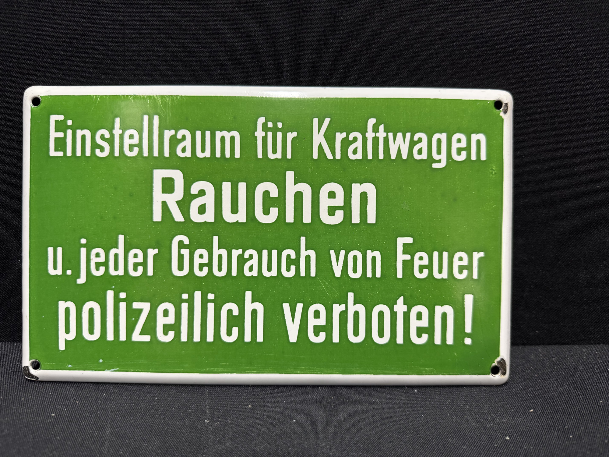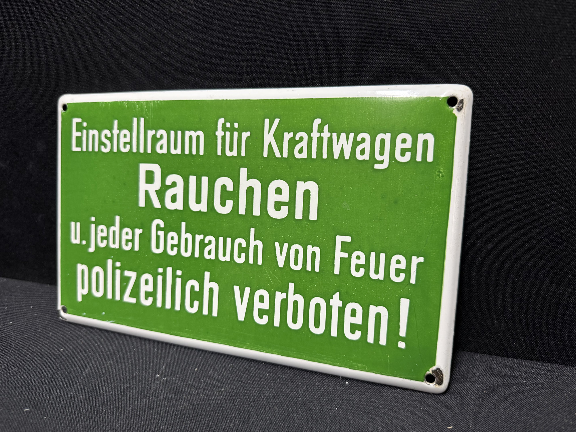 Einstellraum für Kraftwagen….. (Kleines Emailleschild um 1965)