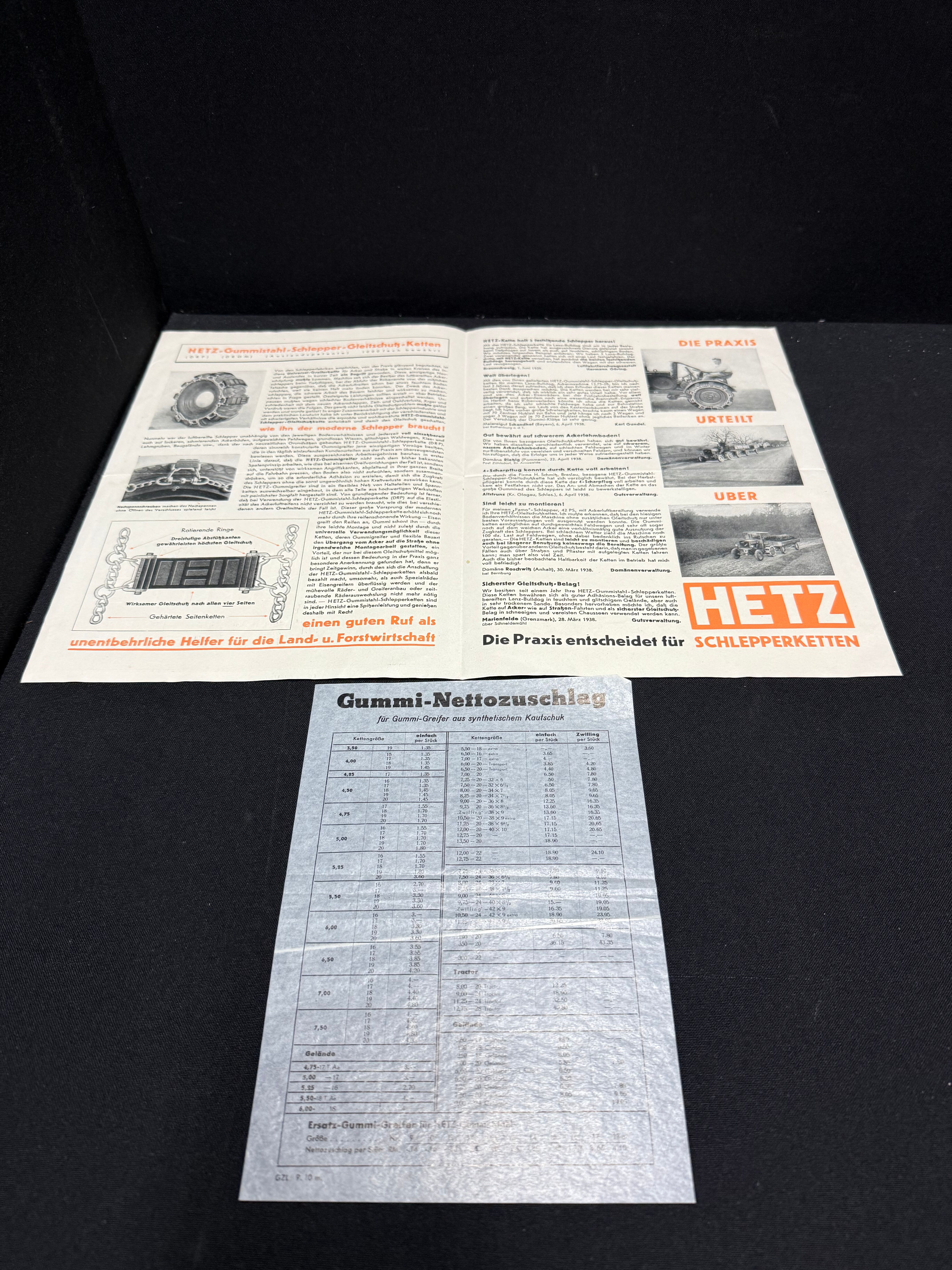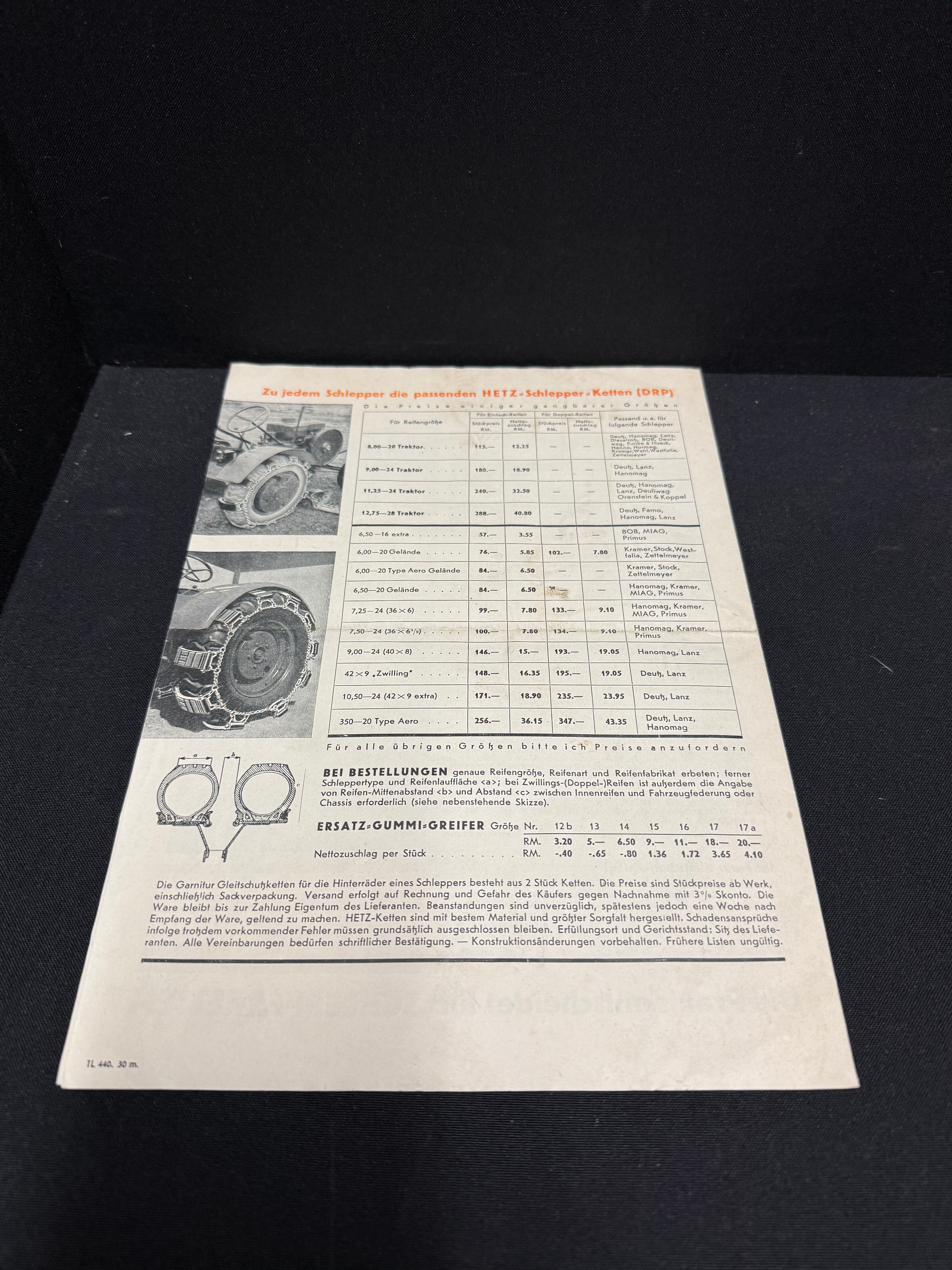 Hetz - Die neue Gummi-Stahl Schlepperkette (Werbeprospekt / gestempelt 1940)
