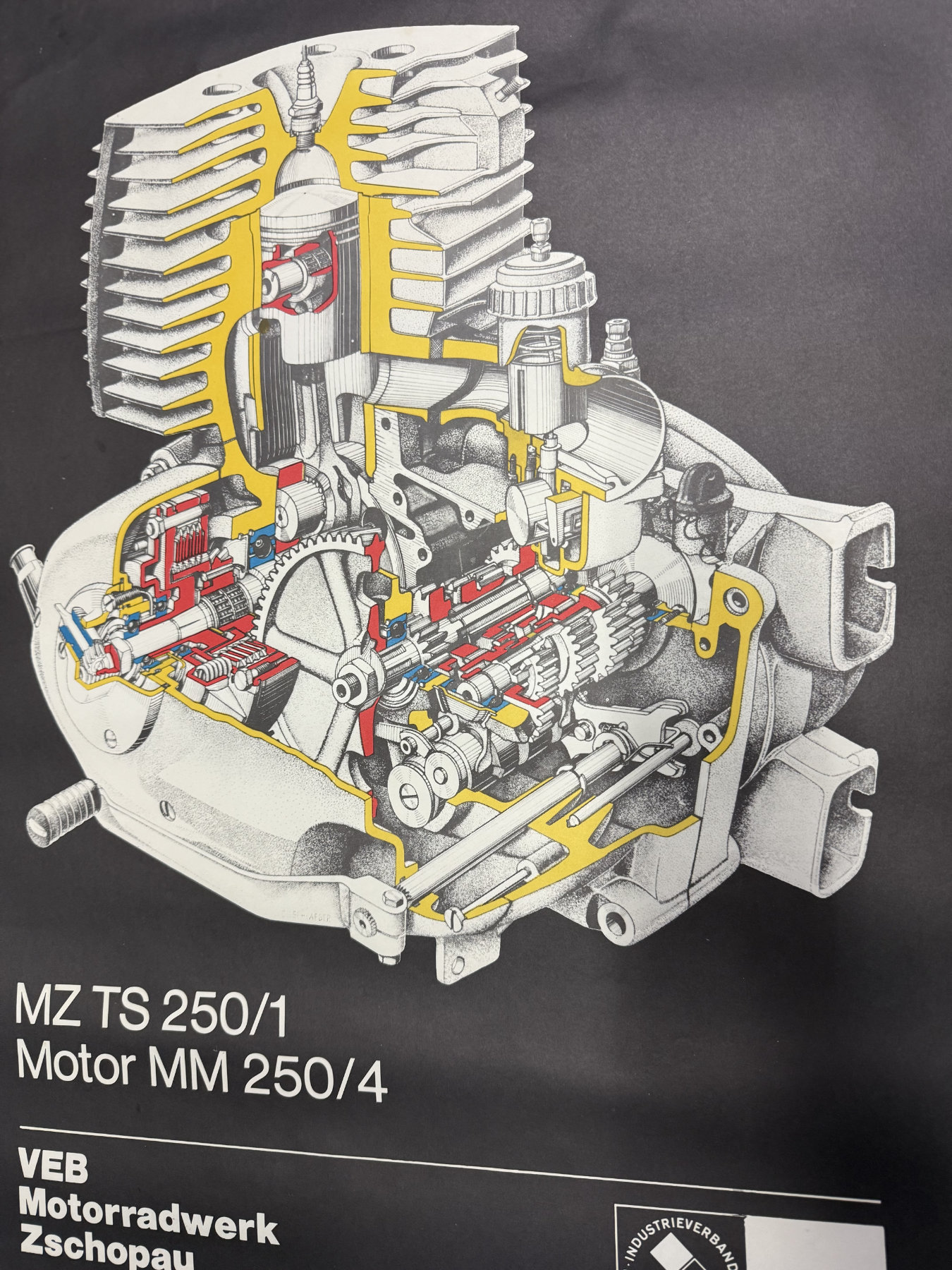 MZ Motoraufbau TS 250/1 und MM 250/4 / Infoplakat (Wohl 1970er Jahre)