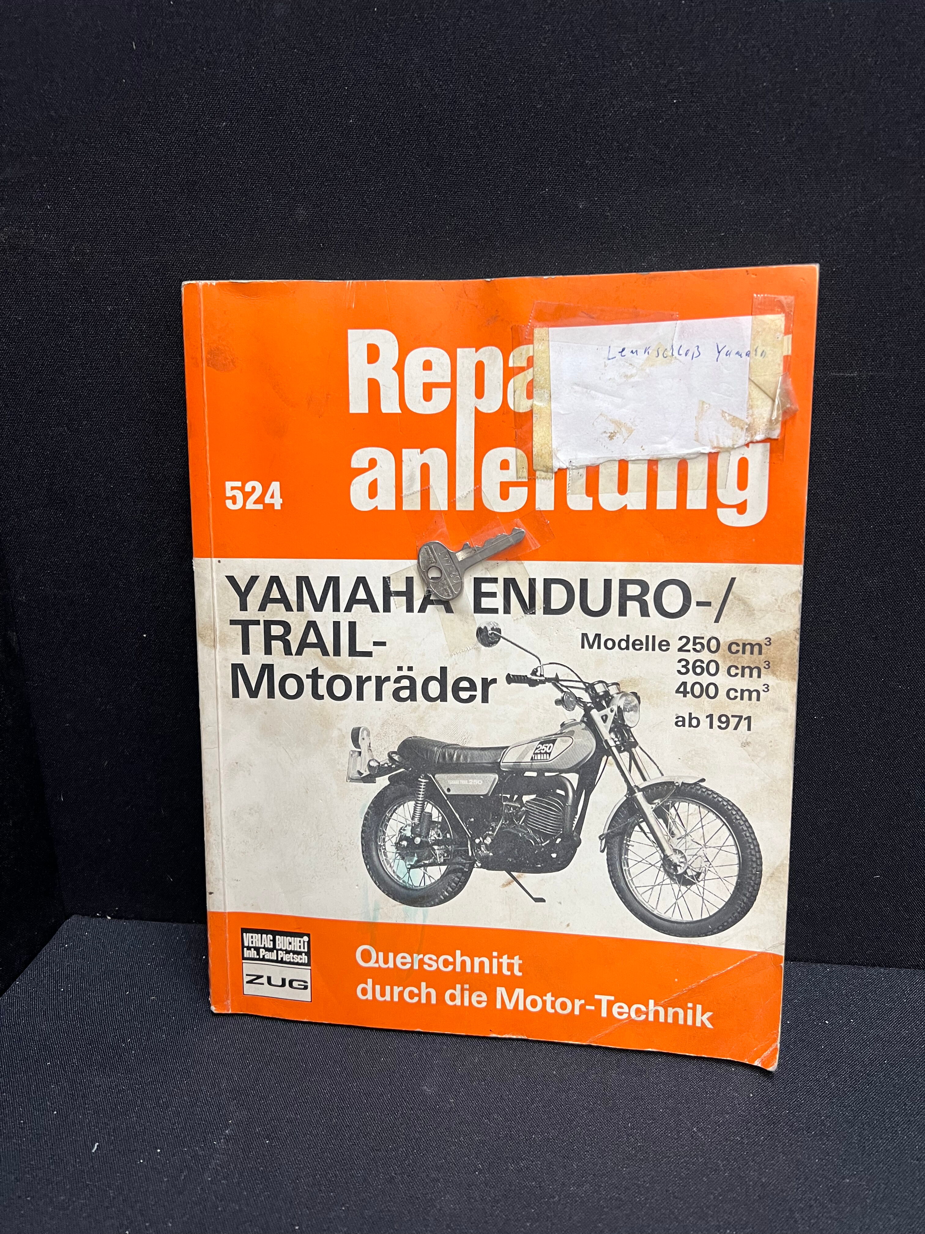 Verlag Bucheli Schweiz. Modelle 250, 360 und 400 Kubik ab Baujahr 1971. Mit Originalschlüssel eines Lenkradschlosses. Vollständig und kompakt, der fleckig und mit Knickspur.