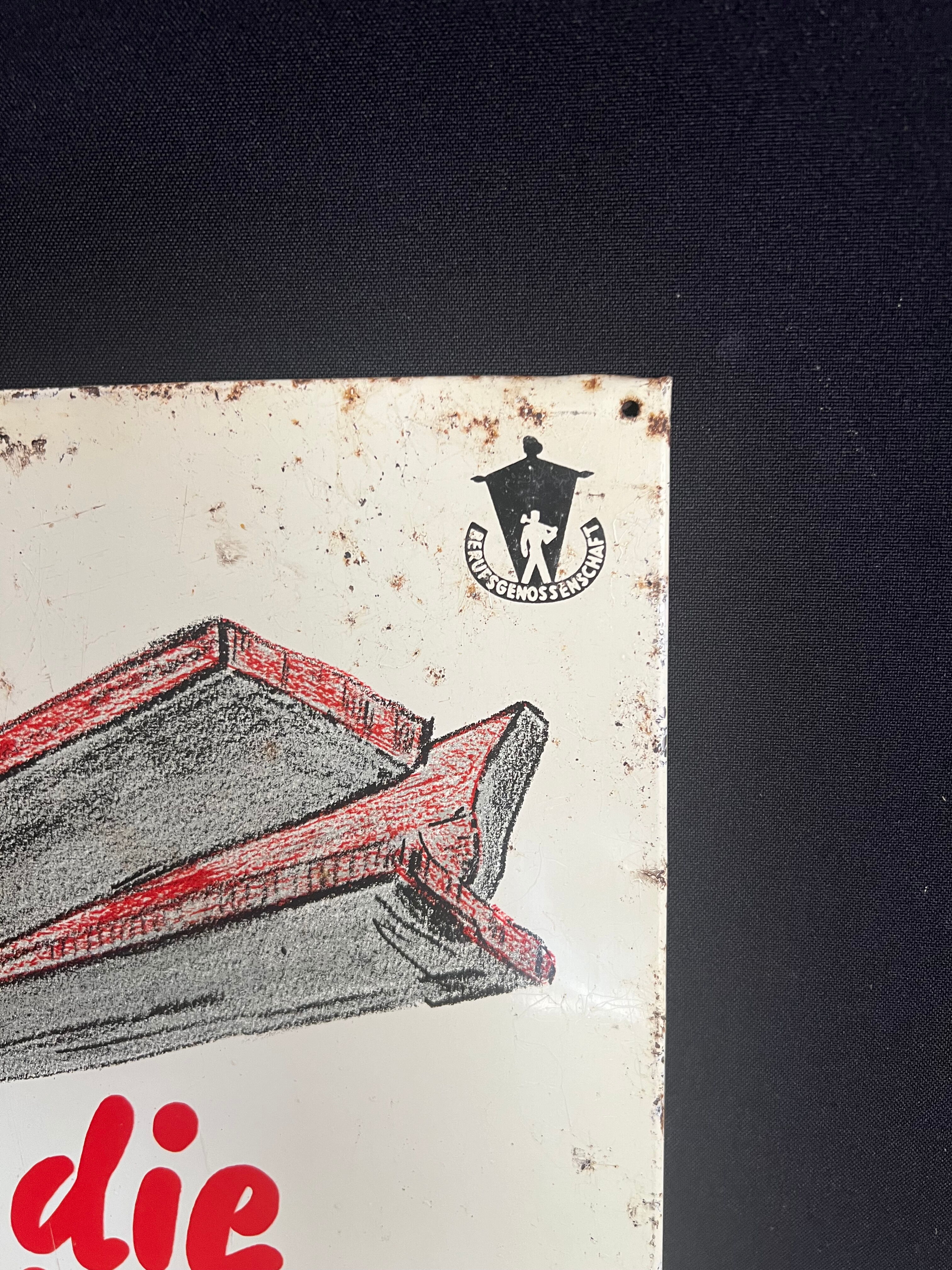 Das Schild wurde grob gereinigt und befindet sich in einem passablen Zustand.