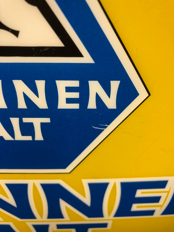 Vermutlich ist das Schild mit einer aufgezogenen Folie bezogen wurden.