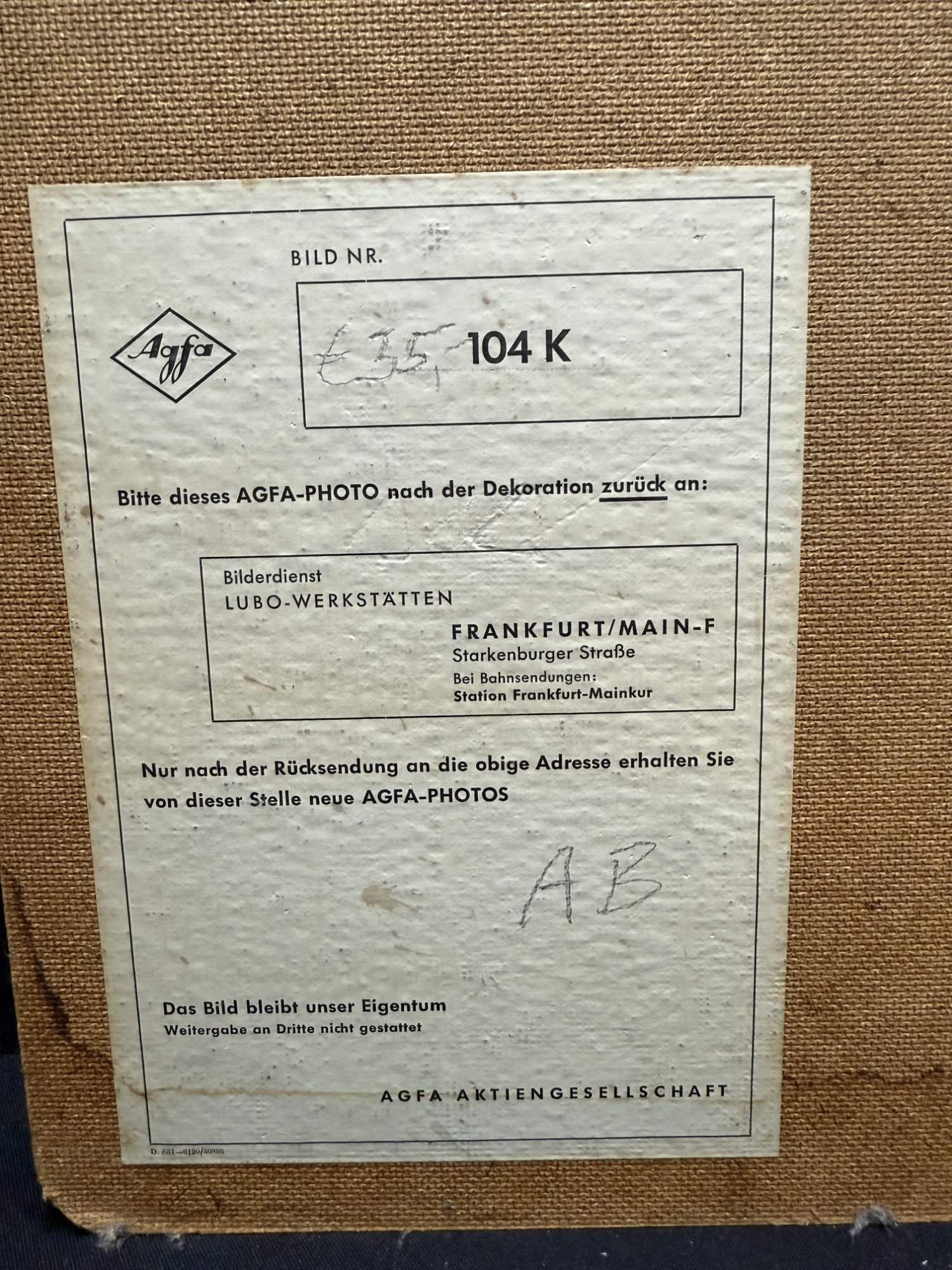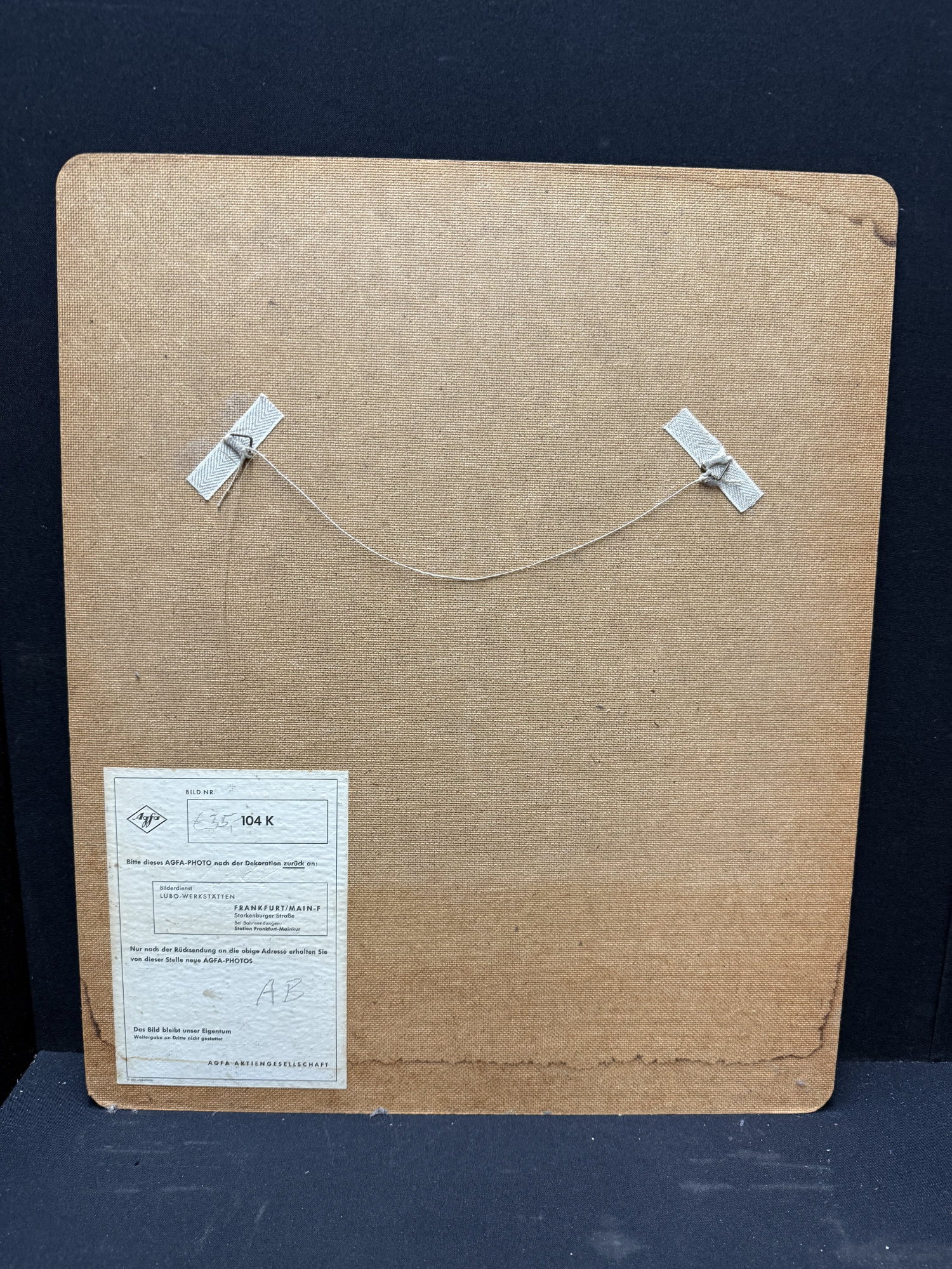 Ca. 59 x 48 cm. Hartfaserplatte glänzend beschichtet. Höchst dekorativ. Mängel nur a den Randbereichen.