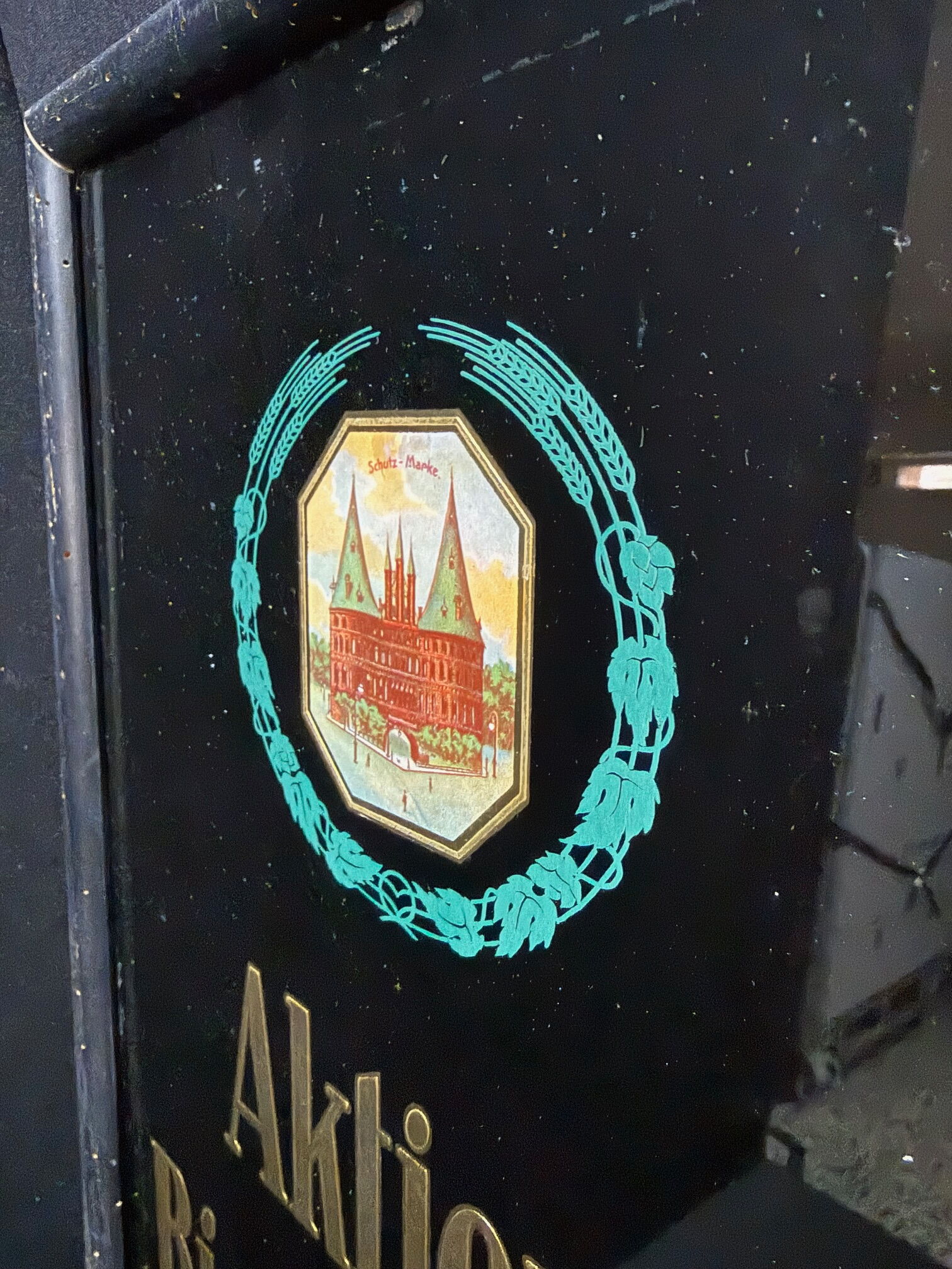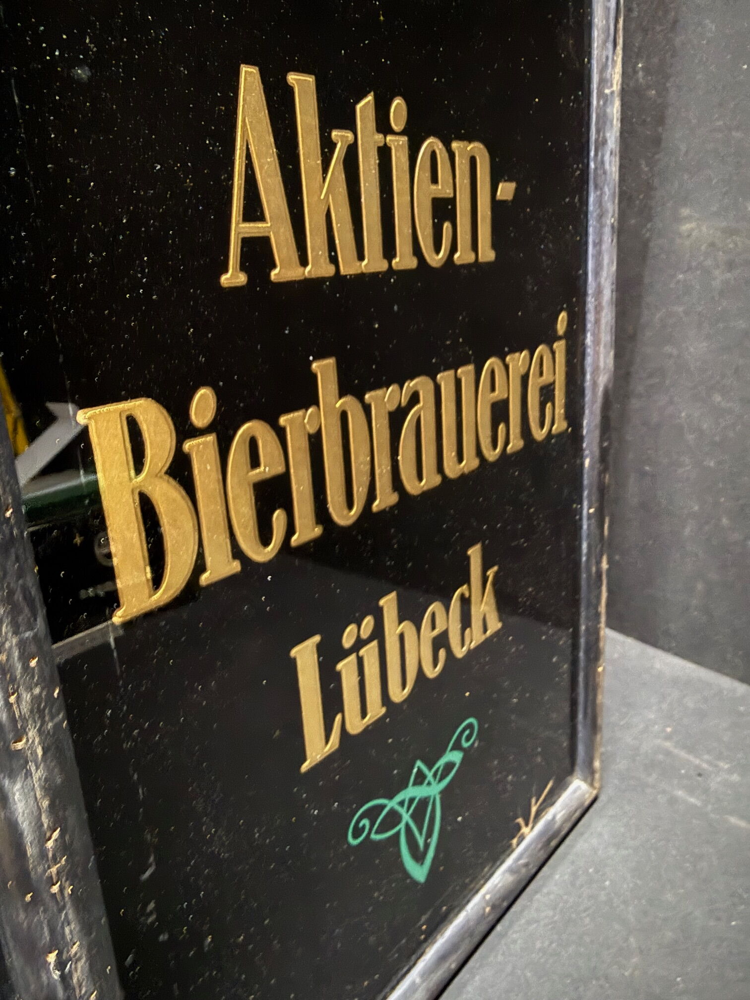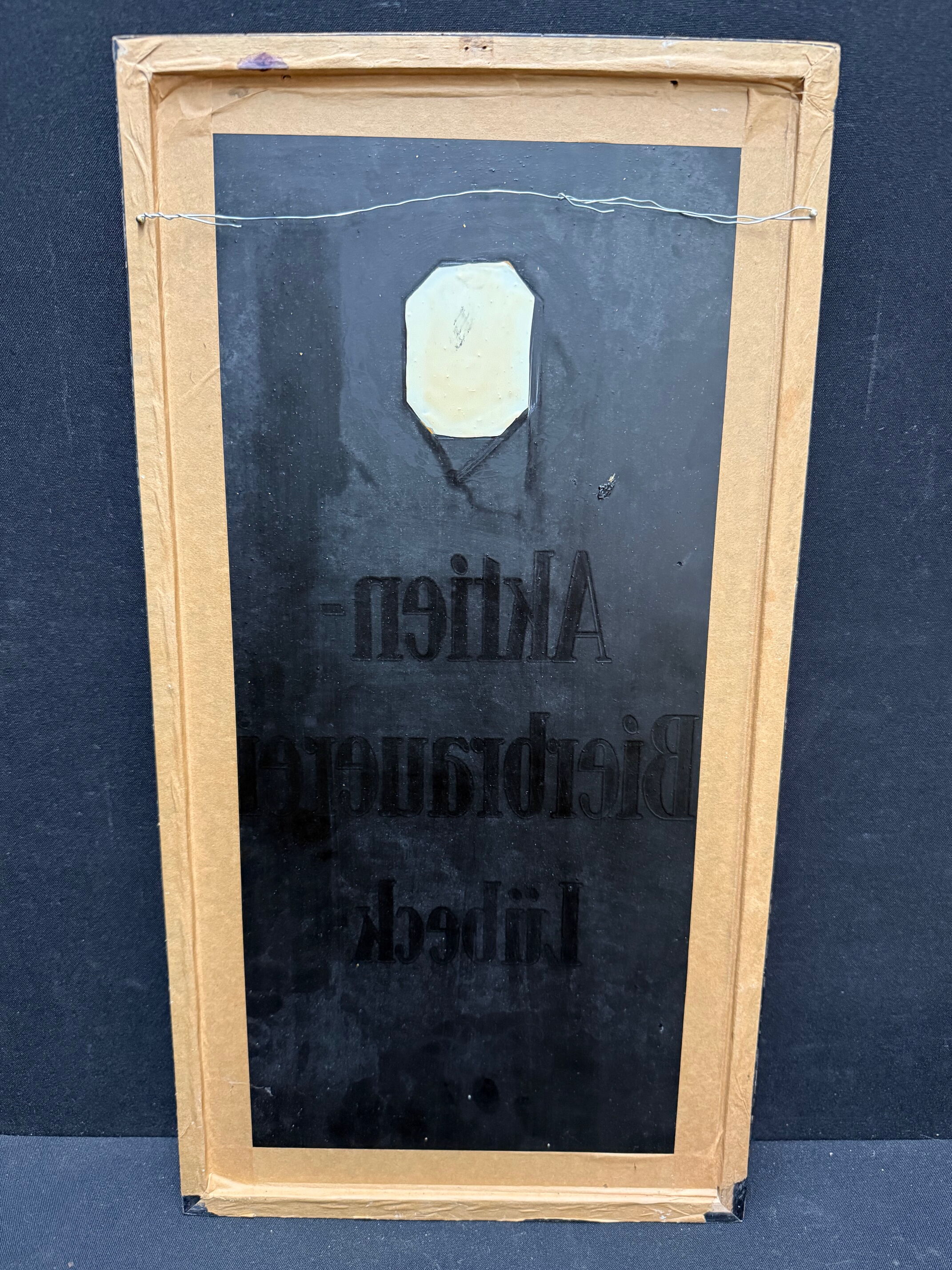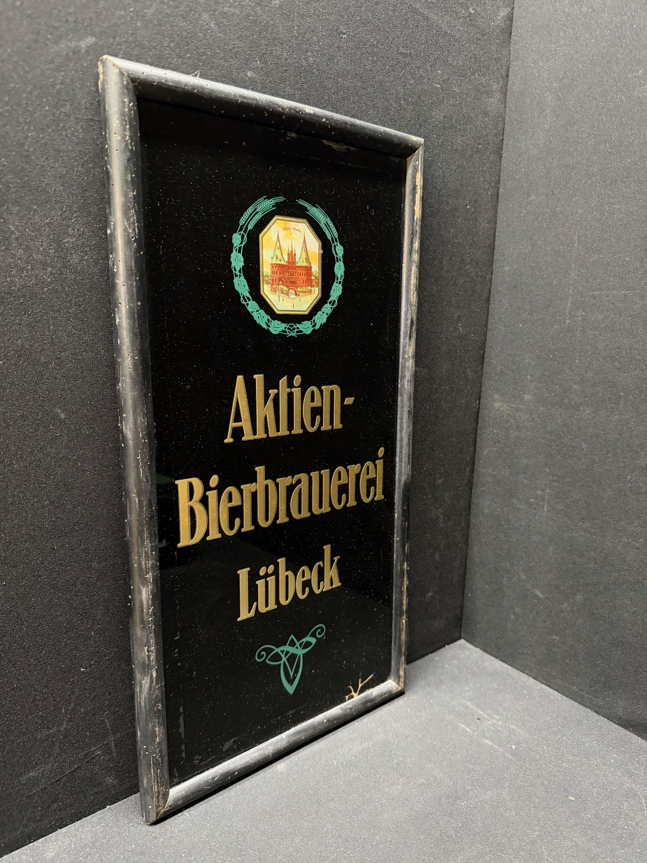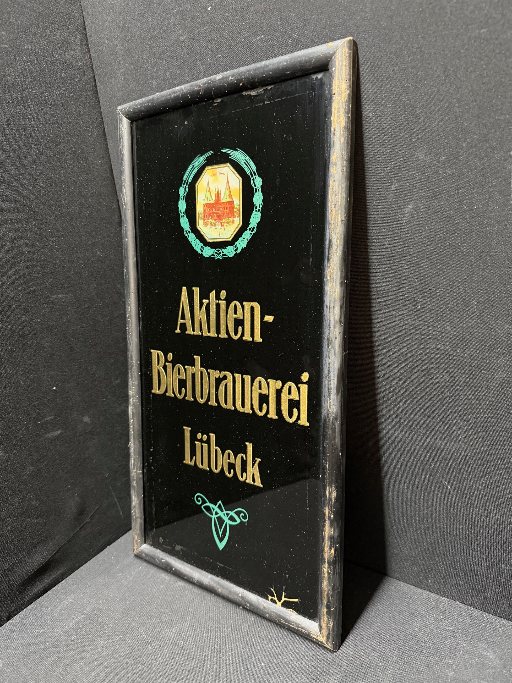 Aktien Bierbrauerei Lübeck - Glaswerbeschild im Rahmen (Um 1925)