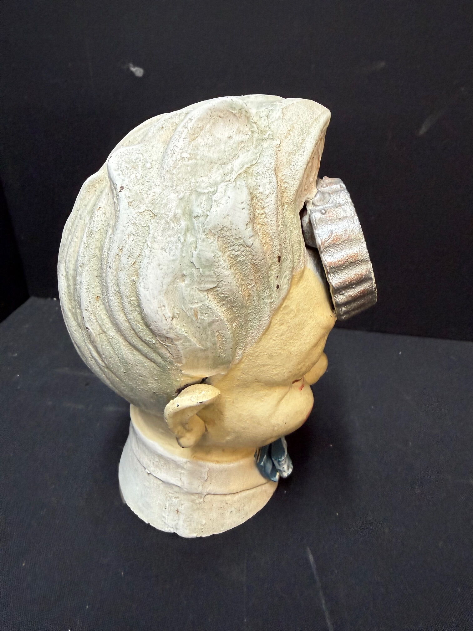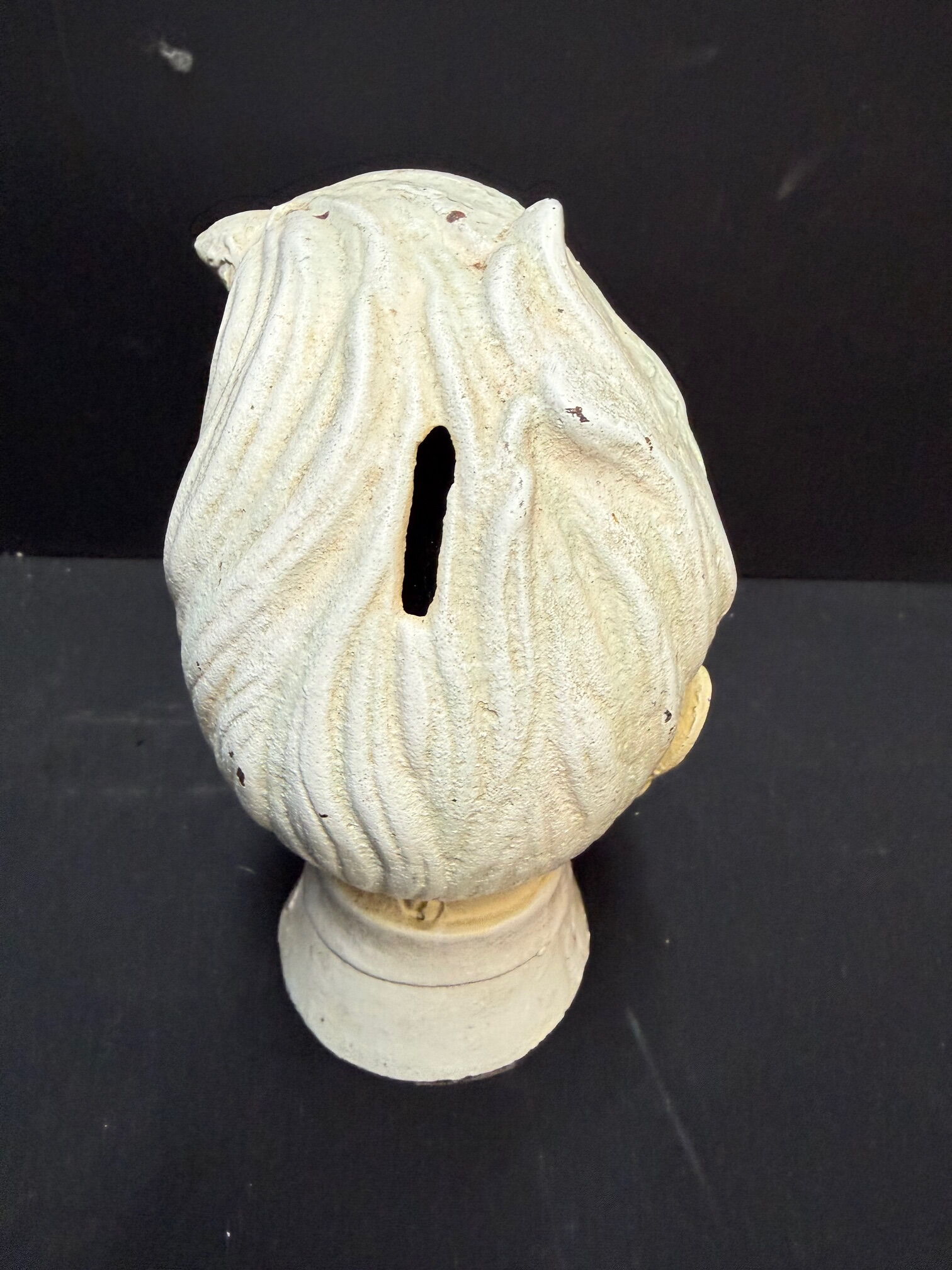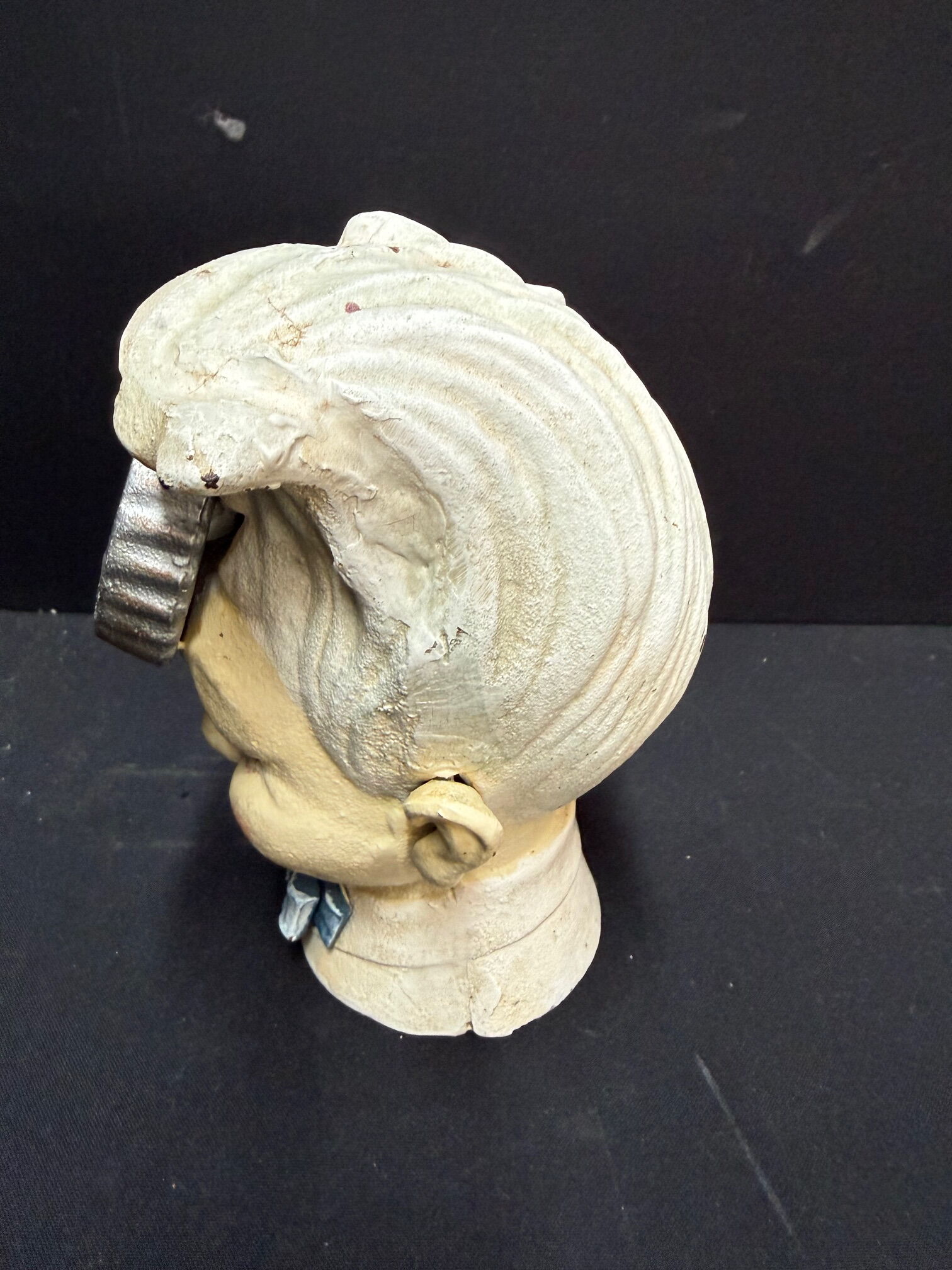 Ca. 15 cm. Extrem schwer. Schlüssel fehlend. Recht guter Gesamtzustand. Sollte schon bei der Produktion alt aussehen.