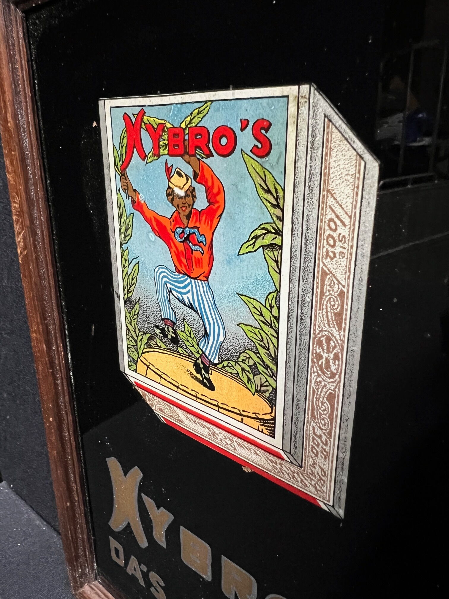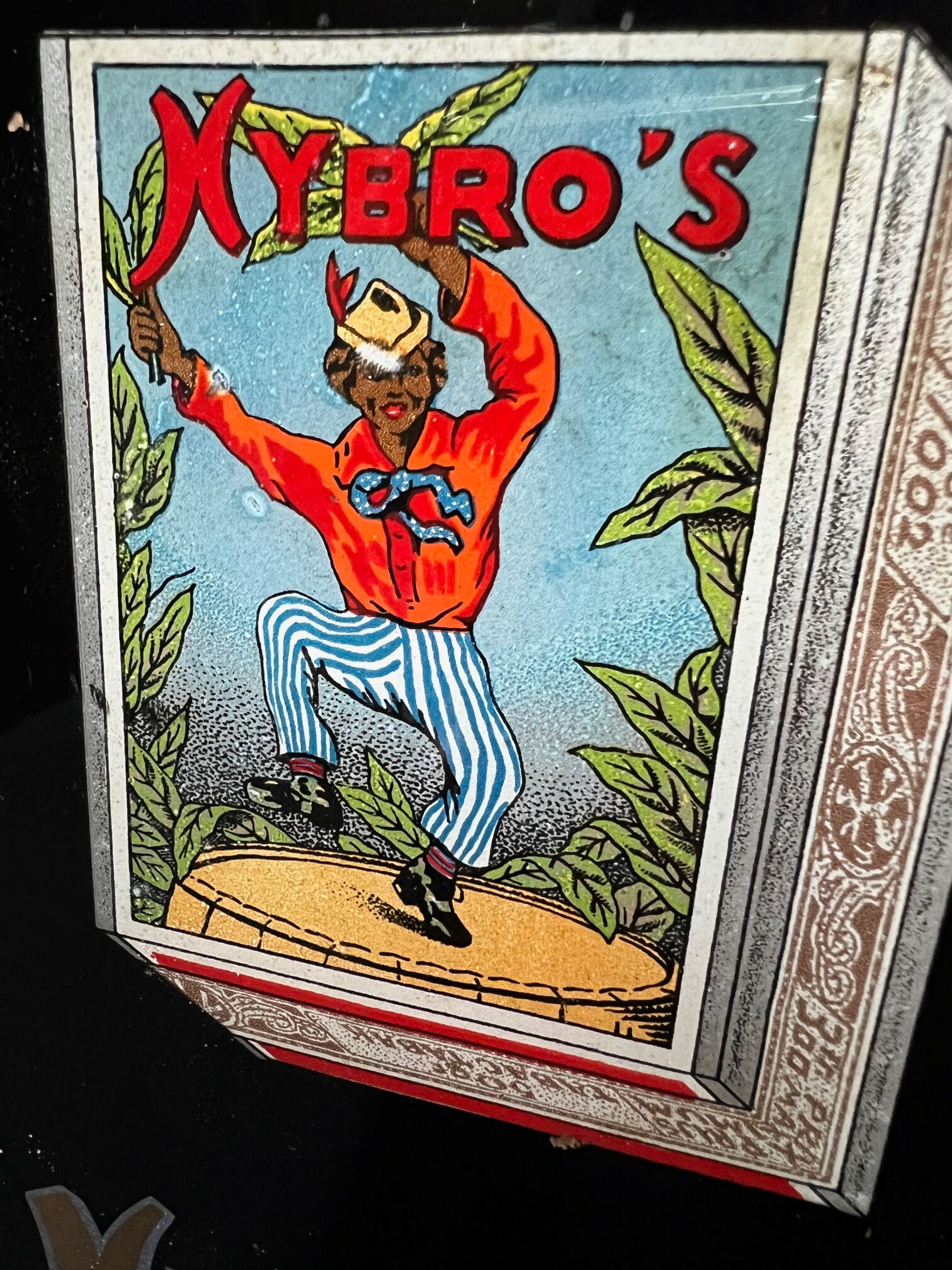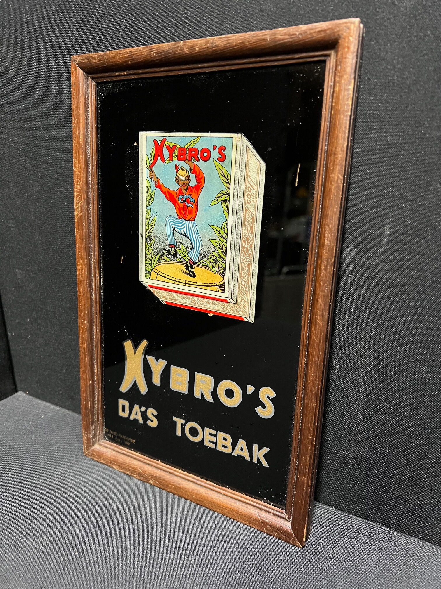 Sehr schönes kleines Glaswerbeschild in prima Erhaltung. Keinerlei Risse oder Sprünge. Das abgebildete Päckchen noch herrlich farbintensiv. Im schwarzen Hintergrund drei-vier winzige Farbirritationen. In der Mütze des Mannes auch eine Winzigkeit an Mangel. Dennoch ein wunderschönes Stück. Die empfindliche Goldschrift perfekt erhalten geblieben.
