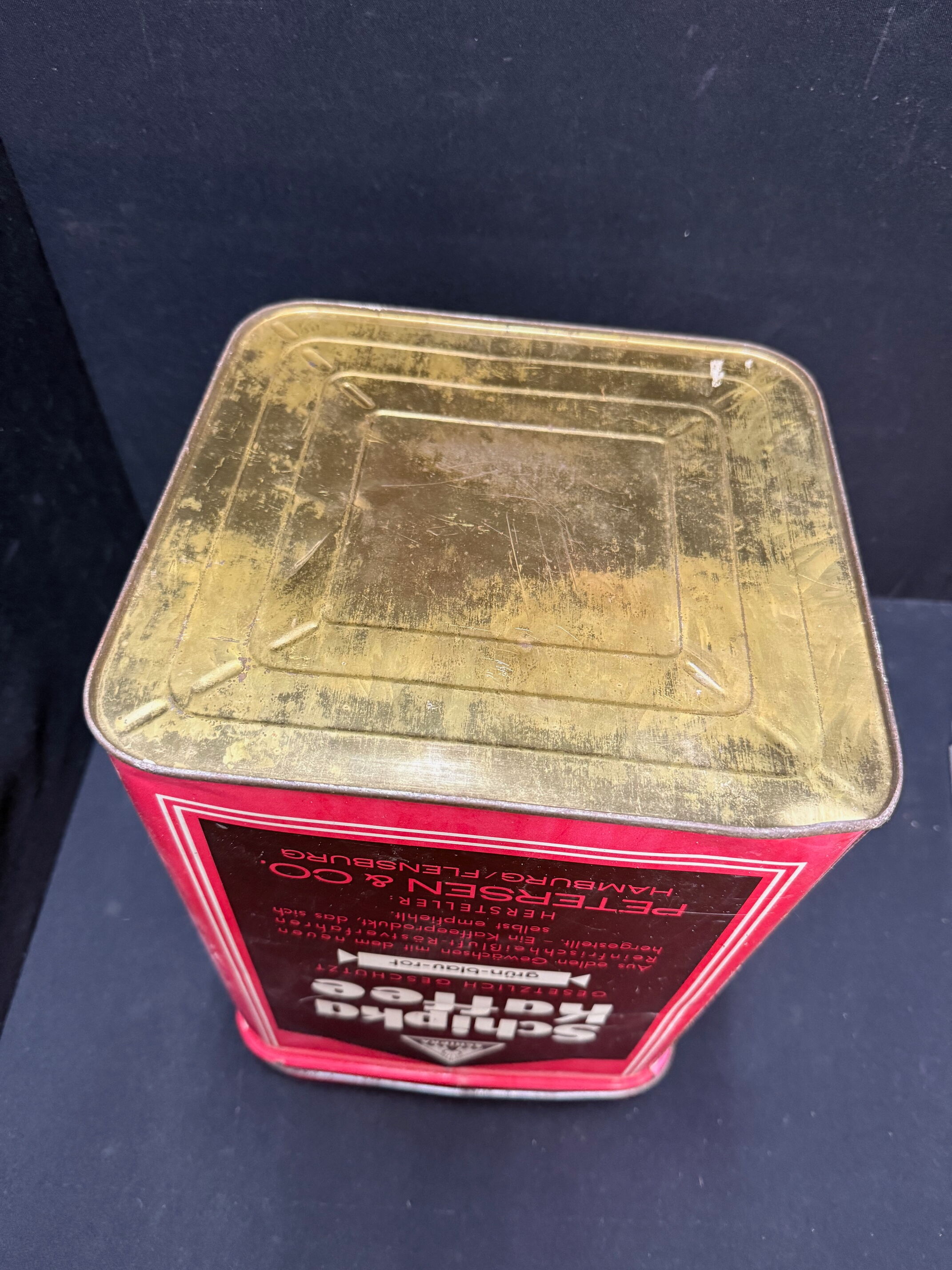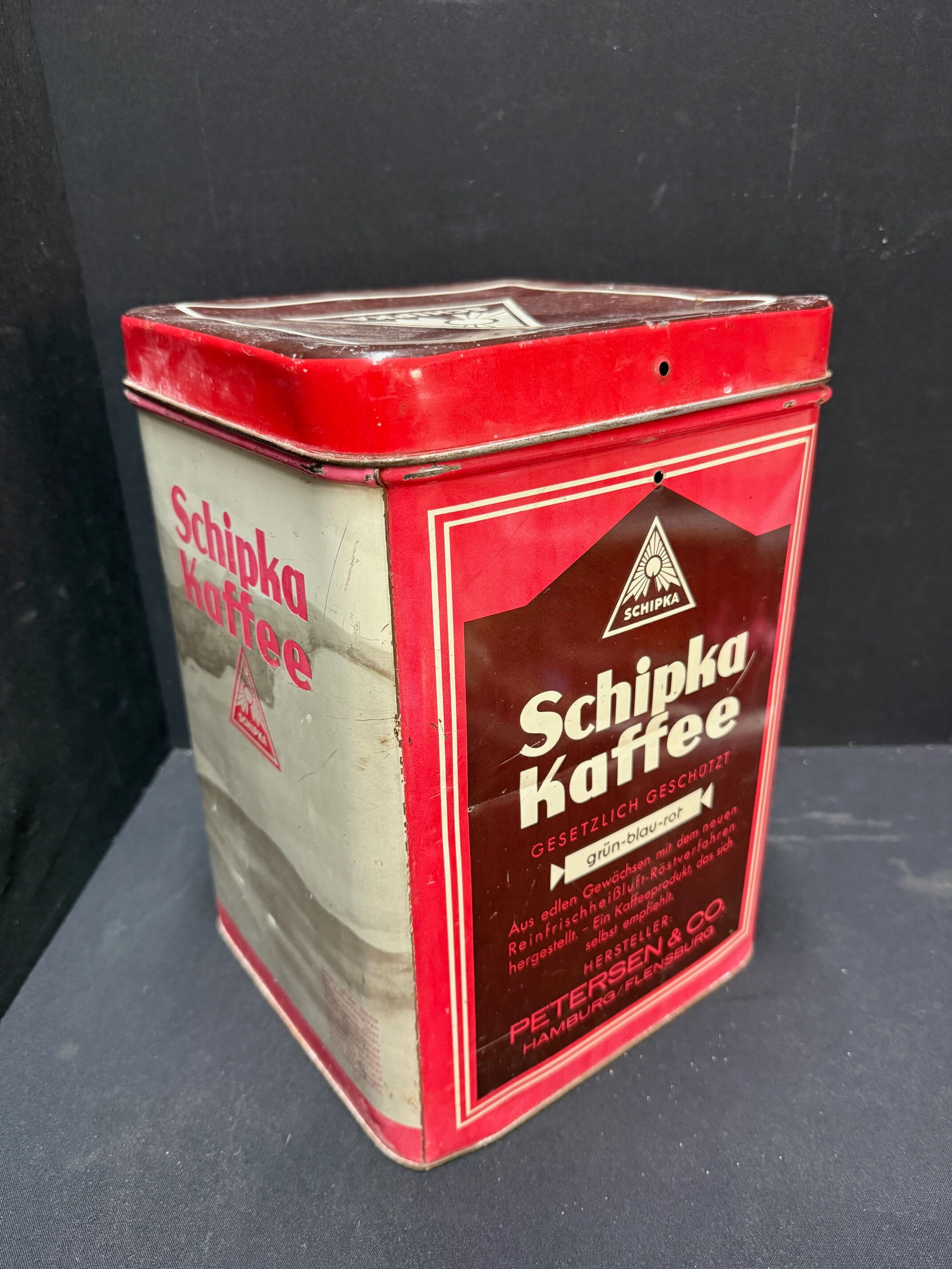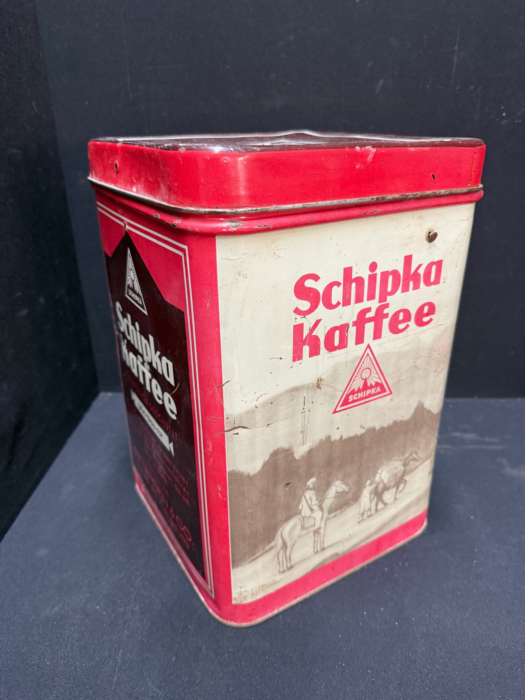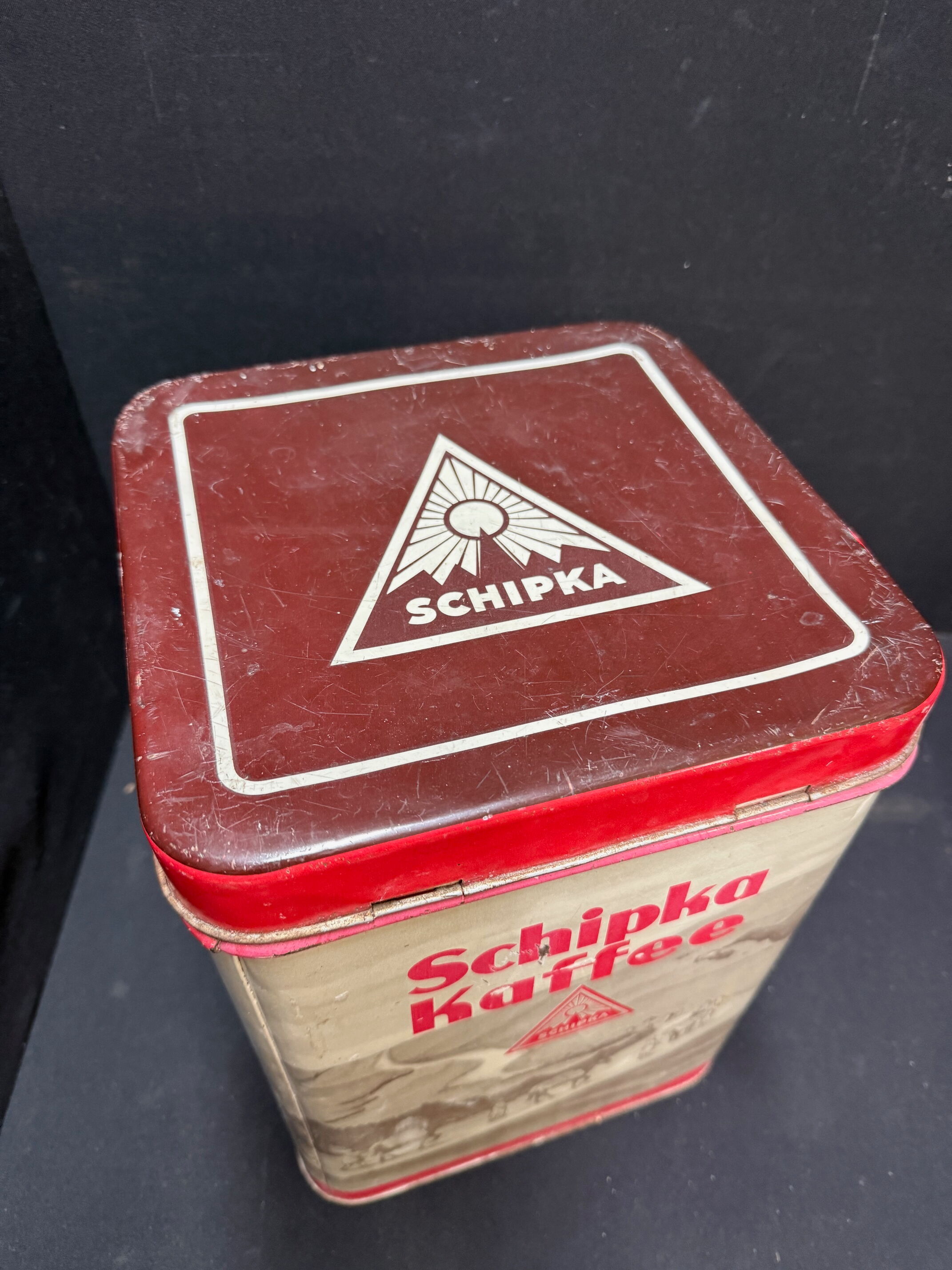 Schöne Motivdose. Ca. 35 cm. Zu sehen ist der Gebirgspass Schipka, über den zu der Zeit durch Karawanen Kaffee, Tee und Gewürze transportiert wurden. Guter Gesamtzustand. Knauf fehlend. Im Rot eventuell leicht verblichen.