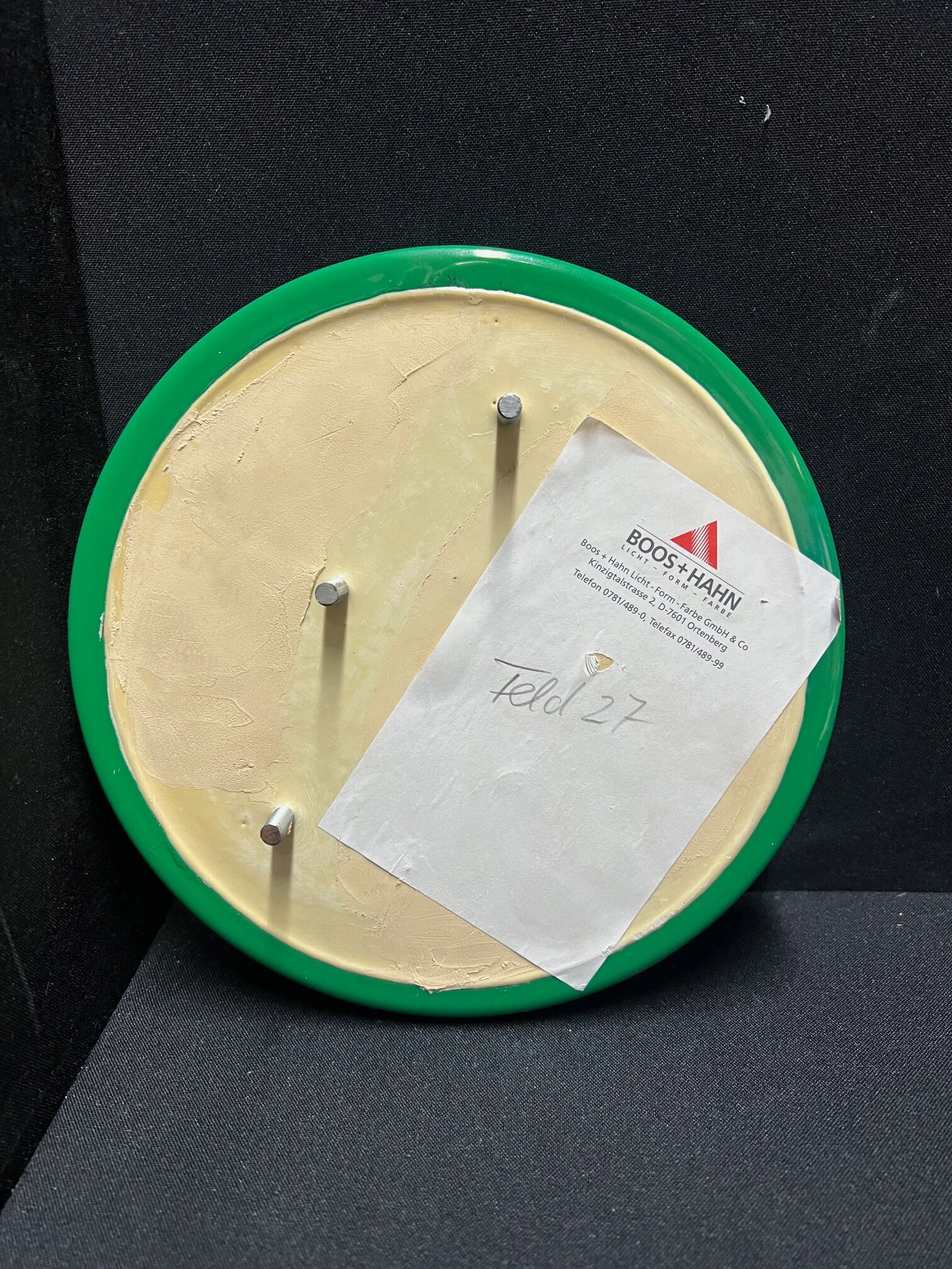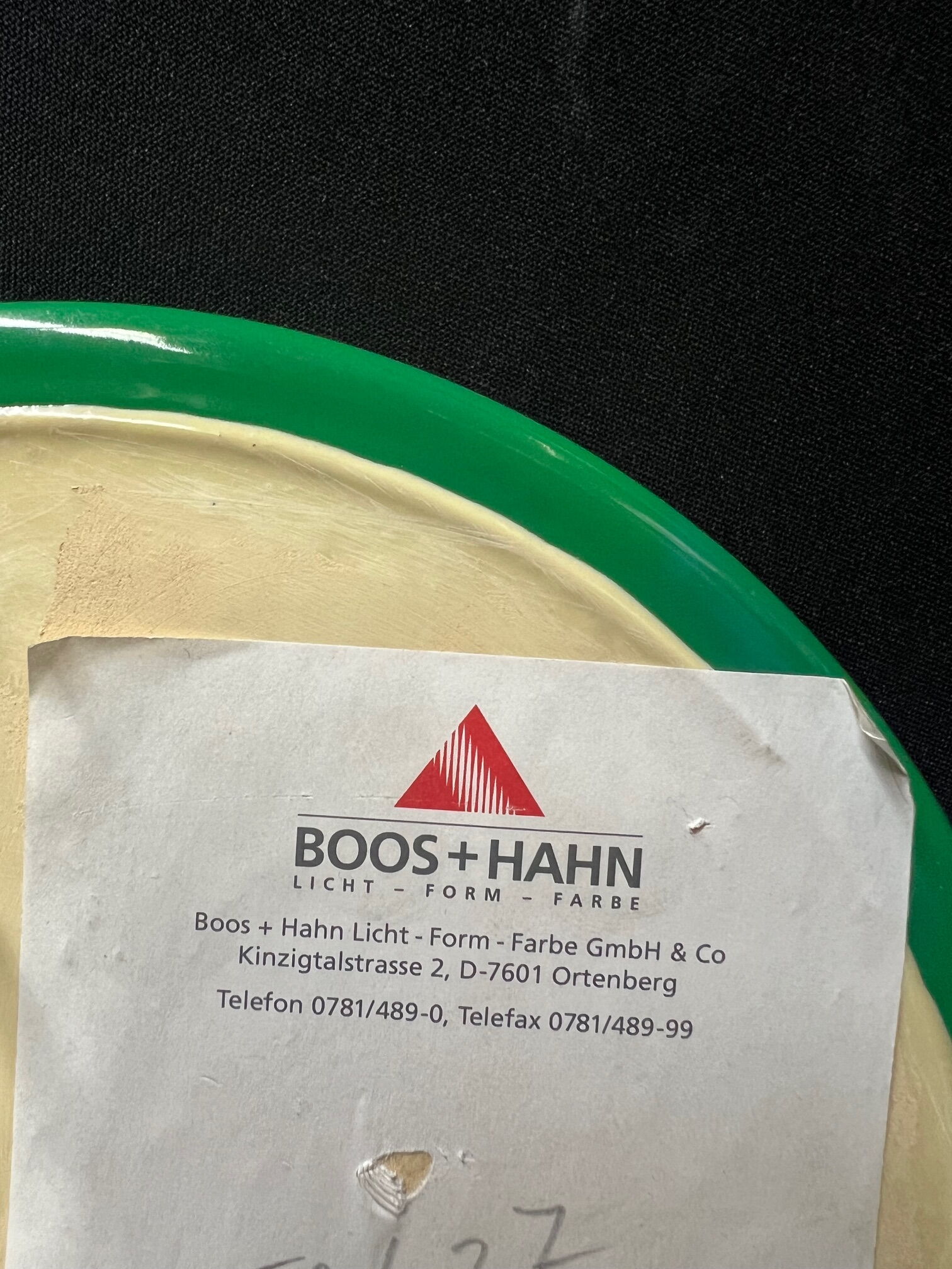 Trägermaterial scheint eine Art Keramik. Mit Emaille ummantelt. Stammt aus dem Lager von Boos + Hahn.