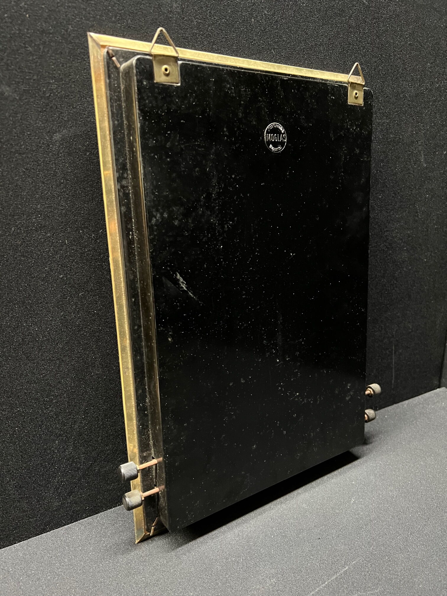 Seltenes Stück, welches uns so nicht geläufig war. Oben mit zwei Aufhängungen. Schwerer Metallkorpus.