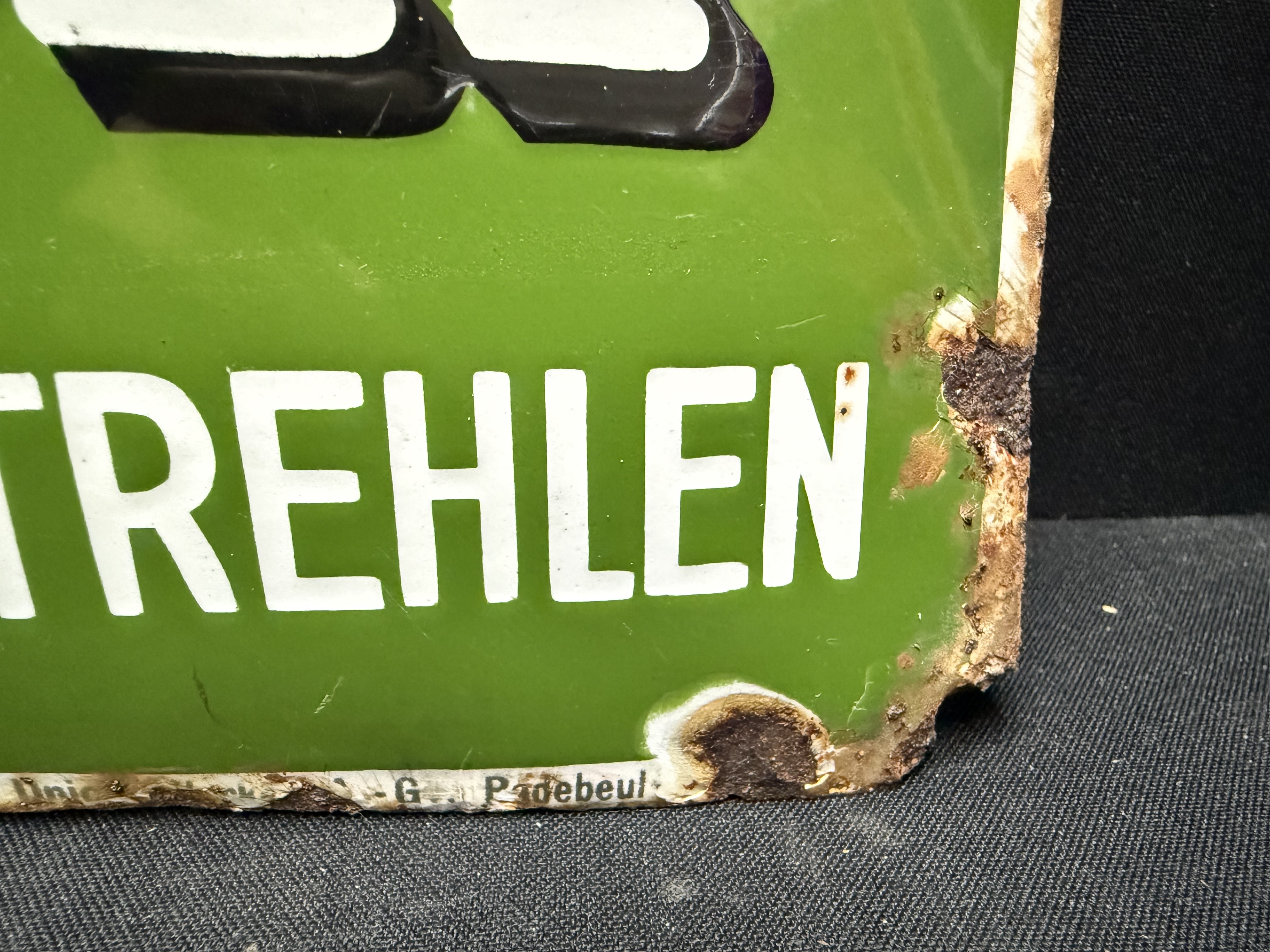 Das Schild wurde grob gereinigt und befindet sich in einem passablen Zustand.