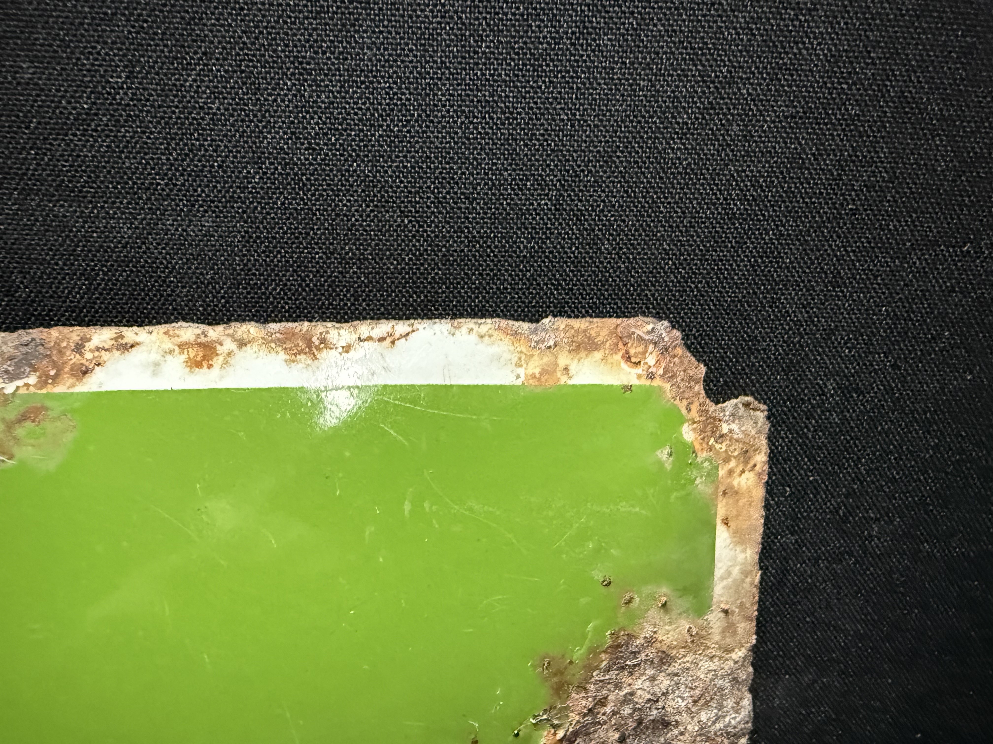 Es ist eine Art lackiertes Blech und kein normales Blechschild.