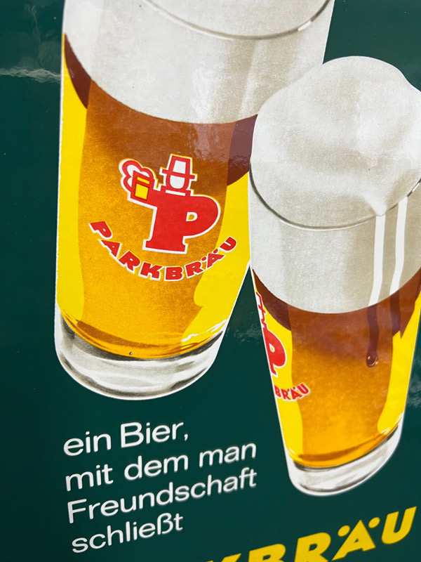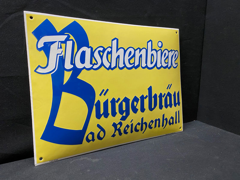 Brieger Brauhaus Biere - Abgekantetes Emailleschild um 1930 (Oberschlesien)