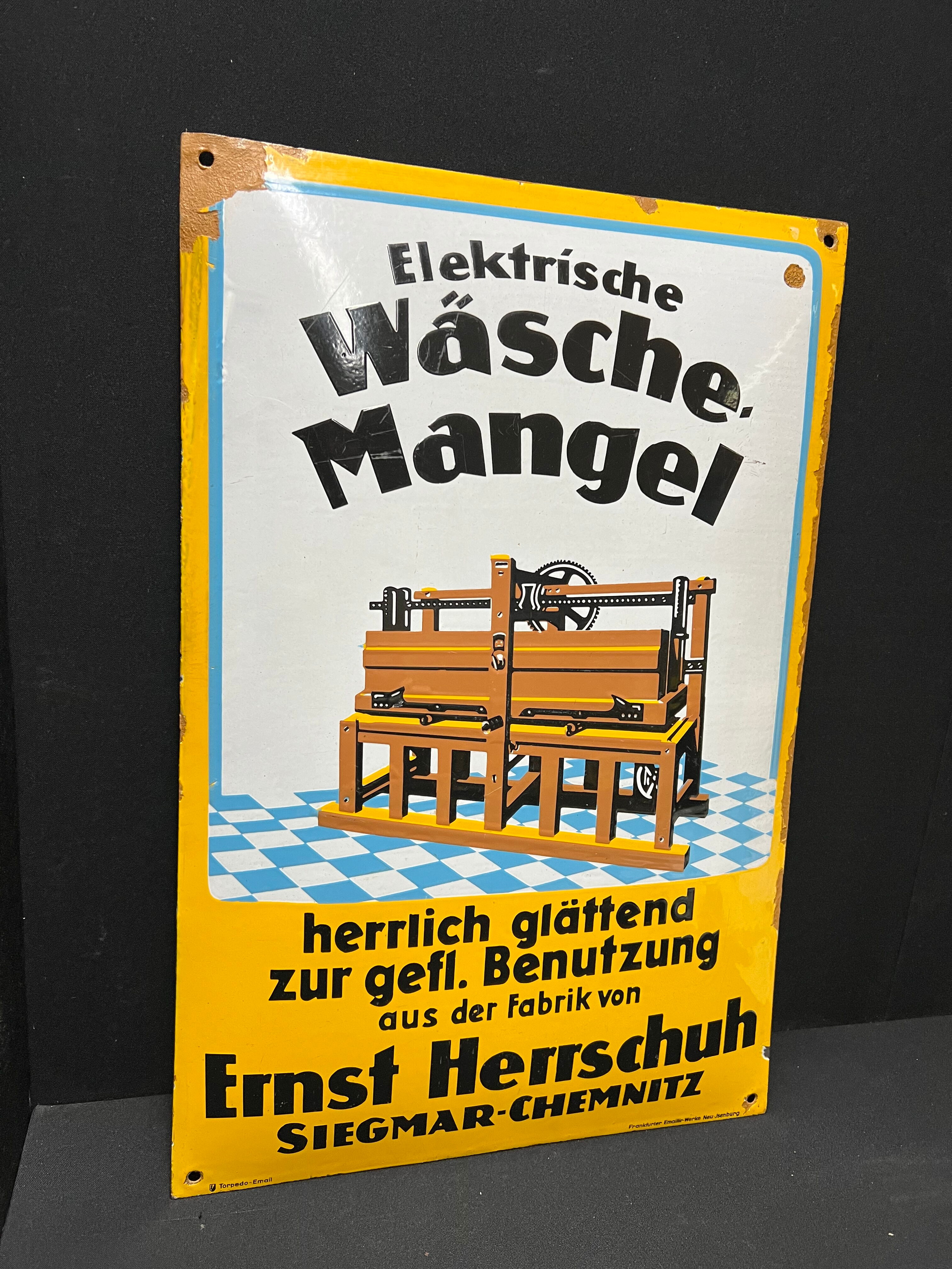 Ernst Herrschuh - Elektrische Wäsche Mangel (Emailleschild der 20er Jahre)