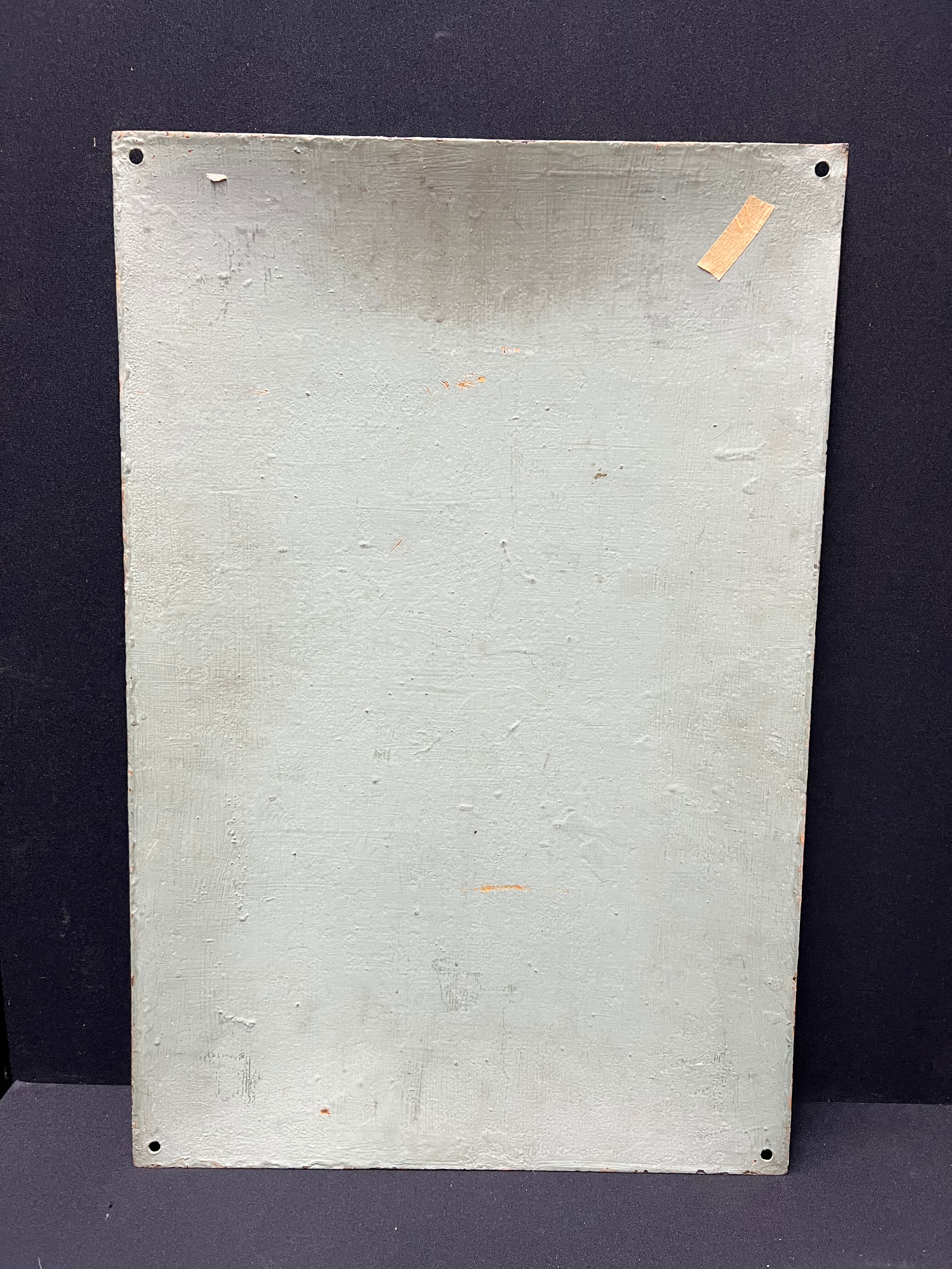 Tolles Schild der Frankfurter Emaillir-Werke. Gewölbt. Rand- und Eckschäden farblich beruhigt. Rückseite mit Rostschutzmittel gestrichen. Sehr schön in Glanz und Farbe. Schriften und Maschine erhaben emailliert. Ca. 60 x 40 cm.