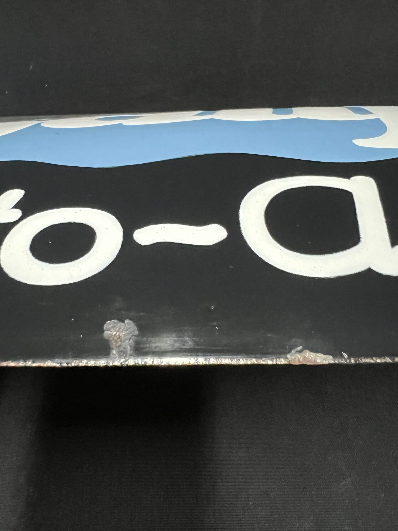 Fantastisches und vielfach noch unterschätztes Schild. Super in Glanz und Farbe. Unten am Rand zwei kleine Probleme an der Deckschicht. Sonst mega. Gewölbt. 30 x 50 cm. Eh ein seltenes Schild. In dieser Erhaltung unikatverdächtig.