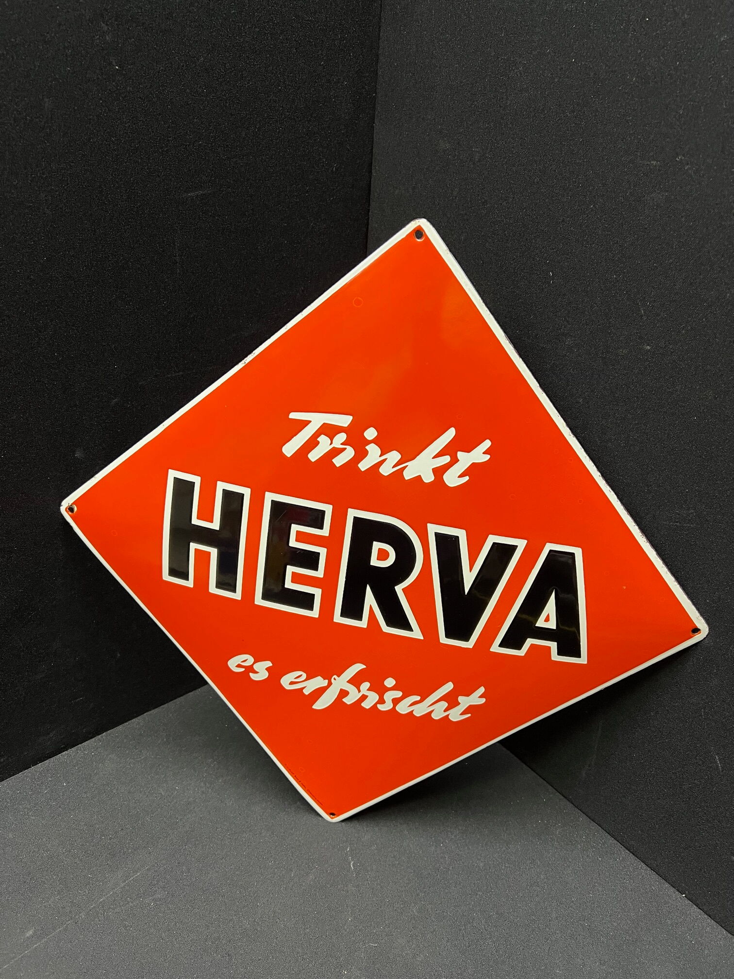 Herva - Trinkt Herva es erfrischt (Gewölbtes Emailleschild der 50er Jahre)