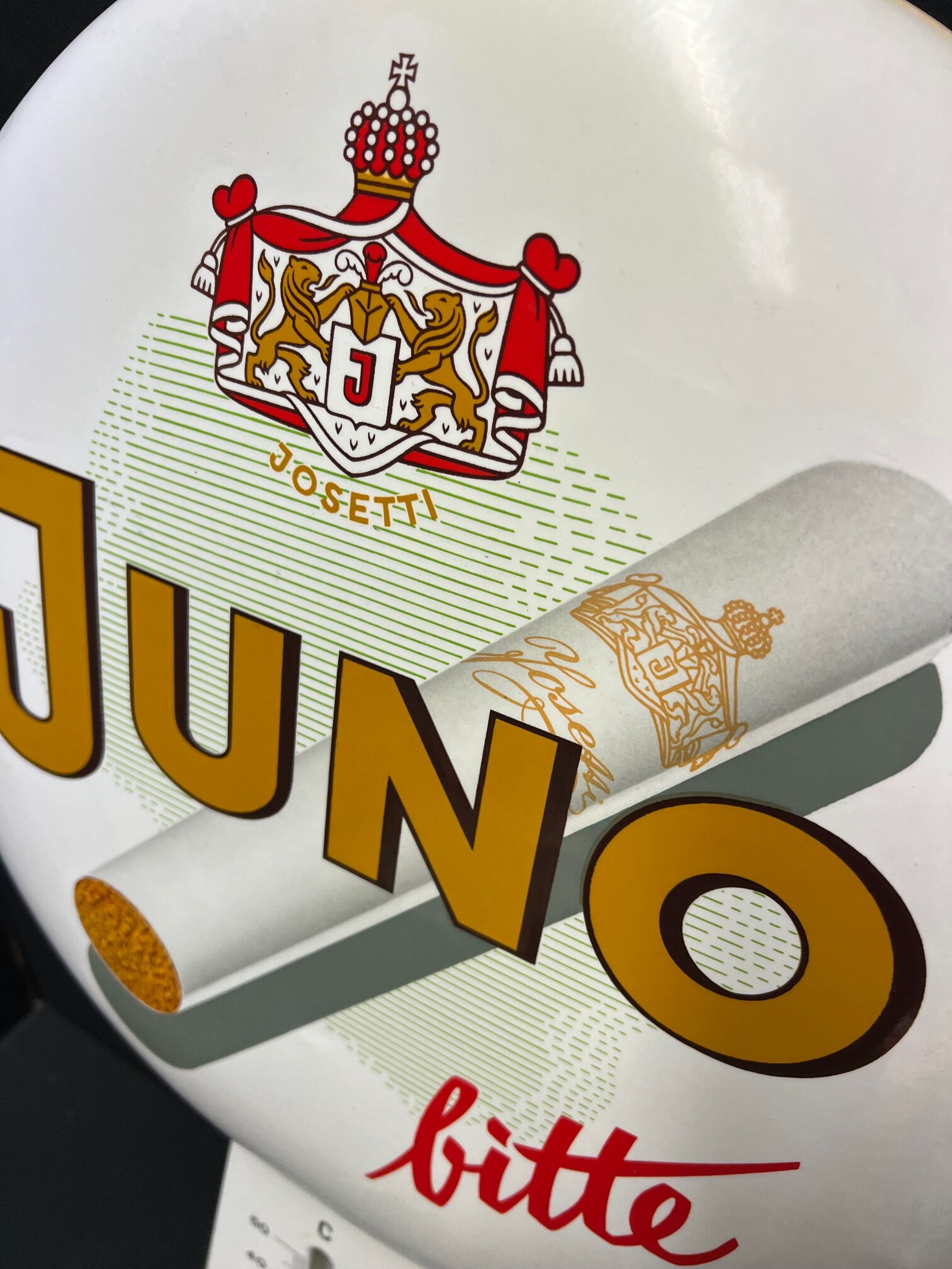Hochglänzender Deckel mit dem unten eigefügten Thermometer. Deutlich seltener als die normalen Juno-Deckel.