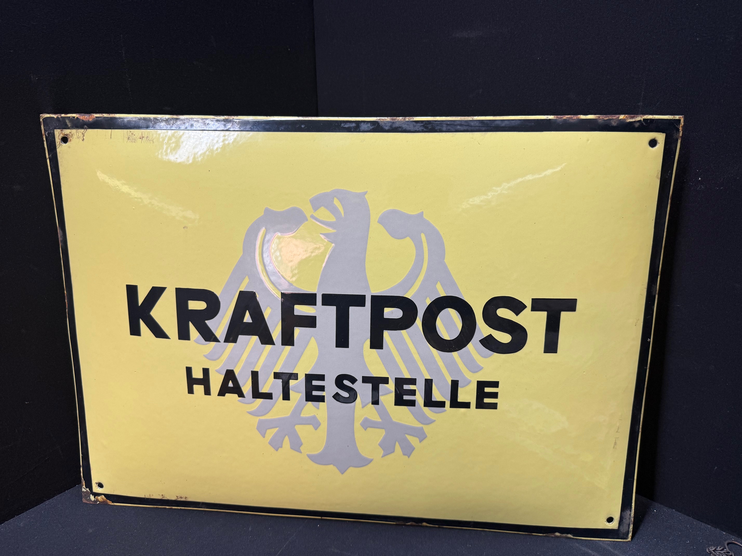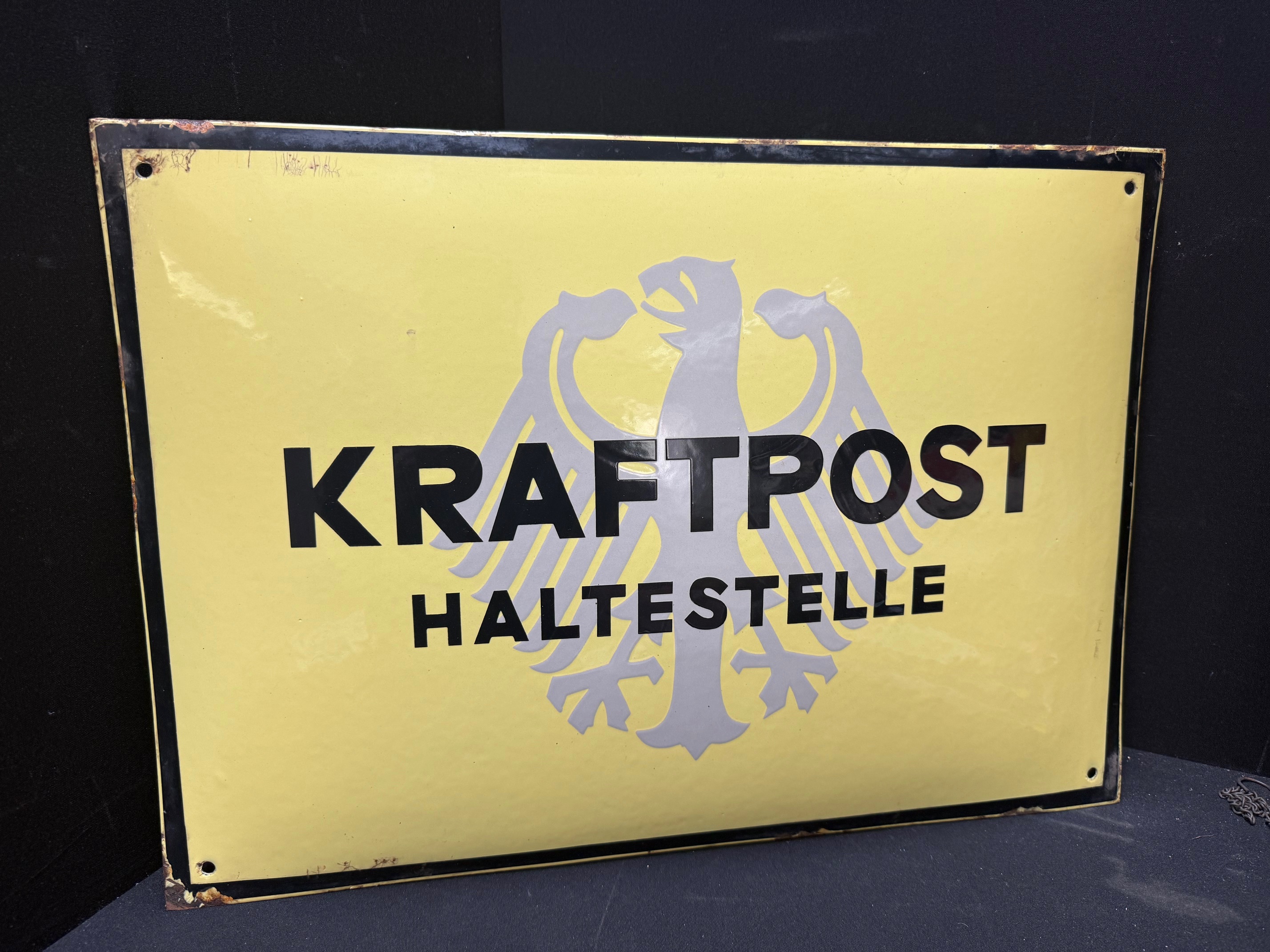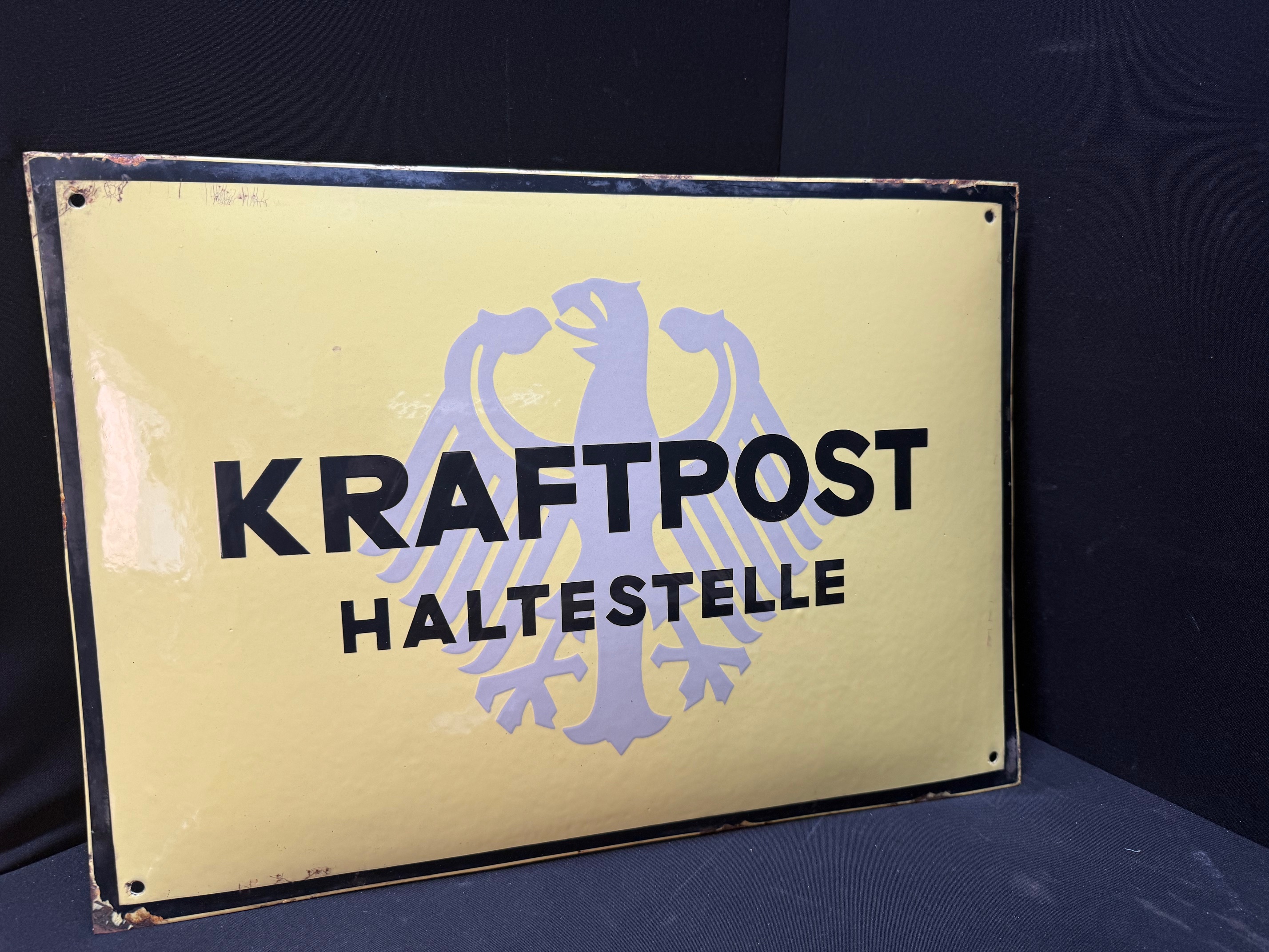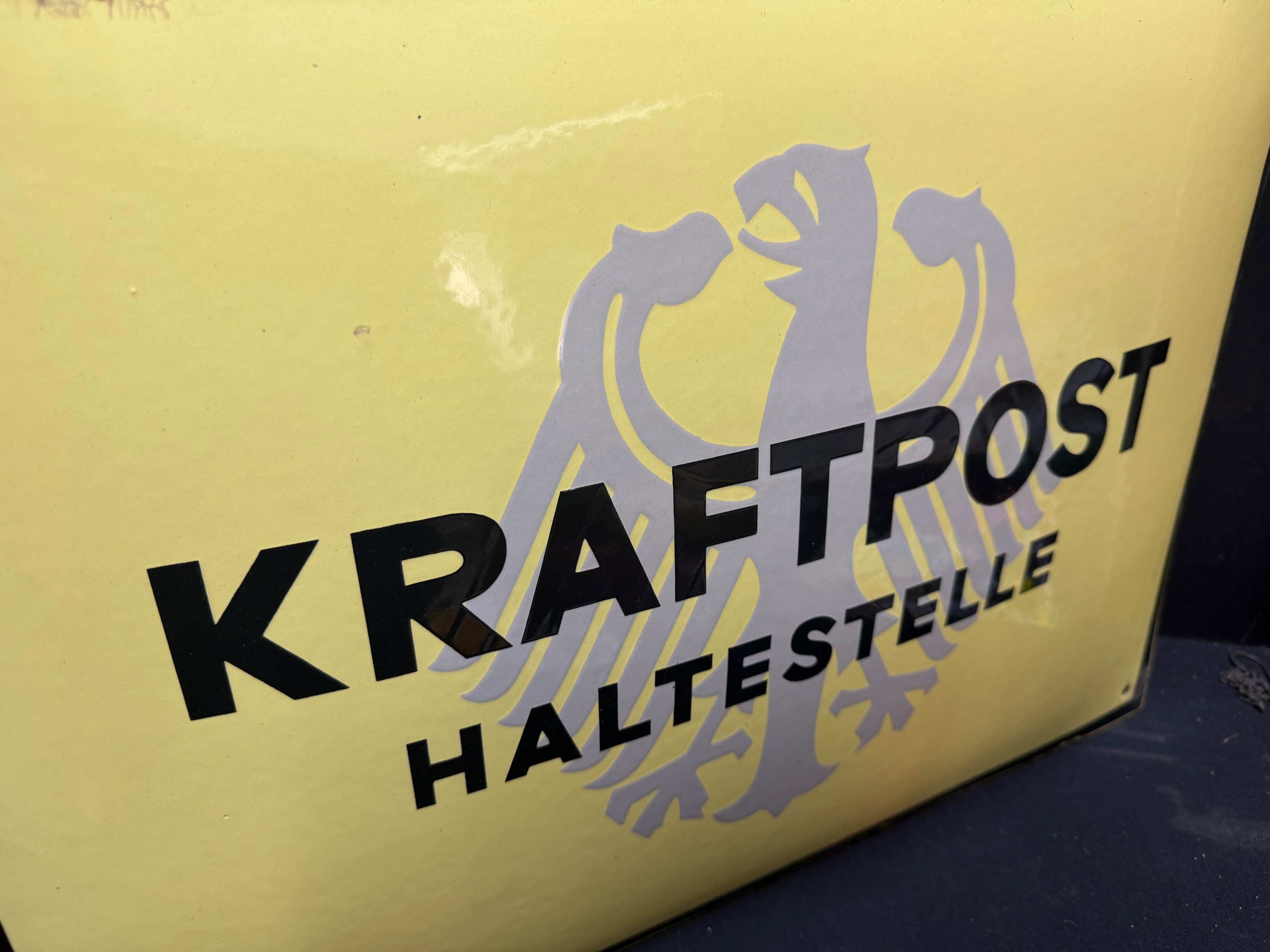 Kraftpost Haltestelle (Gewôlbtes Emailleschild um 1930)