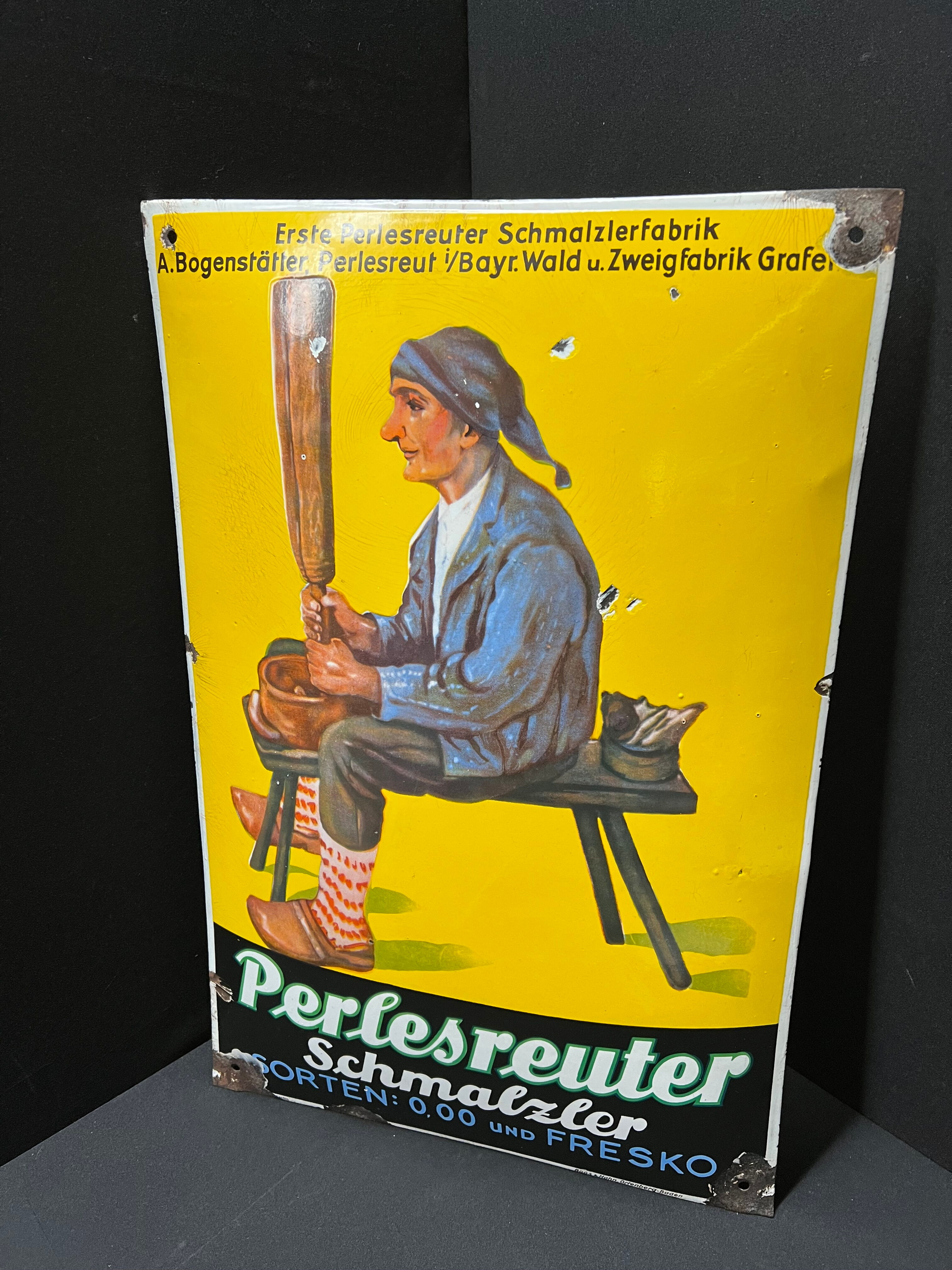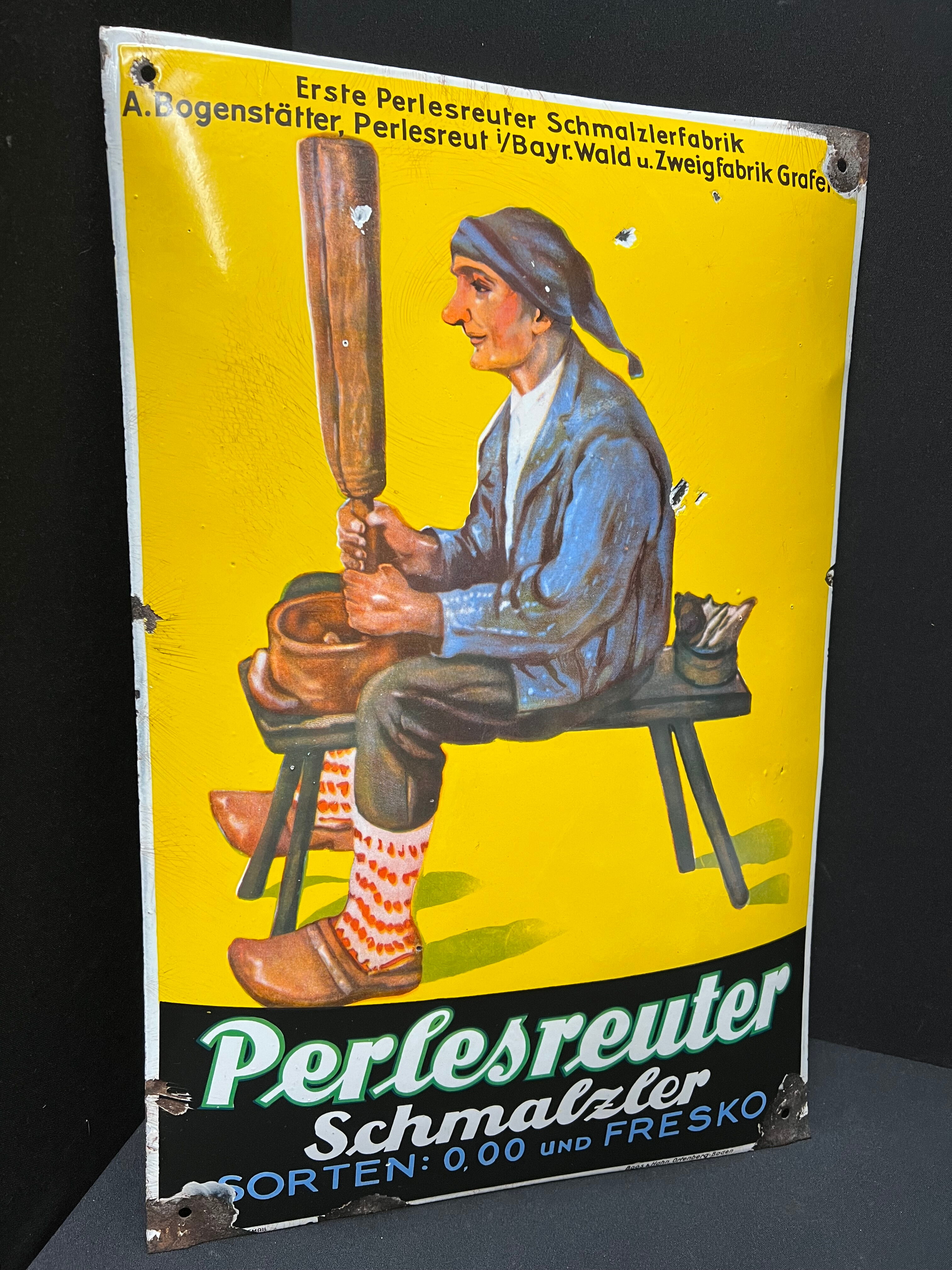 Perlesreuter Schmalzer - Gewölbtes Emailleschild von Boos und Hahn)