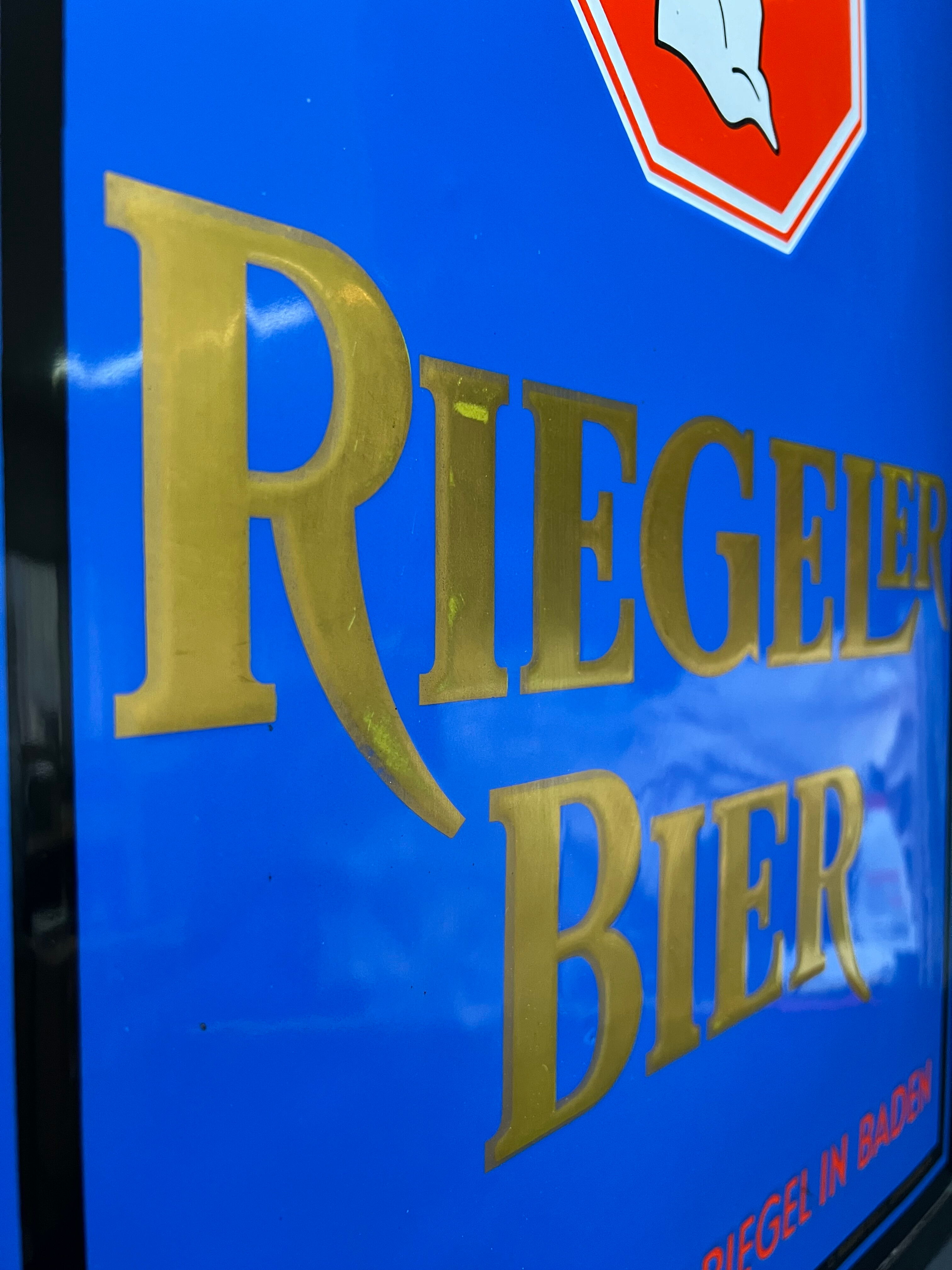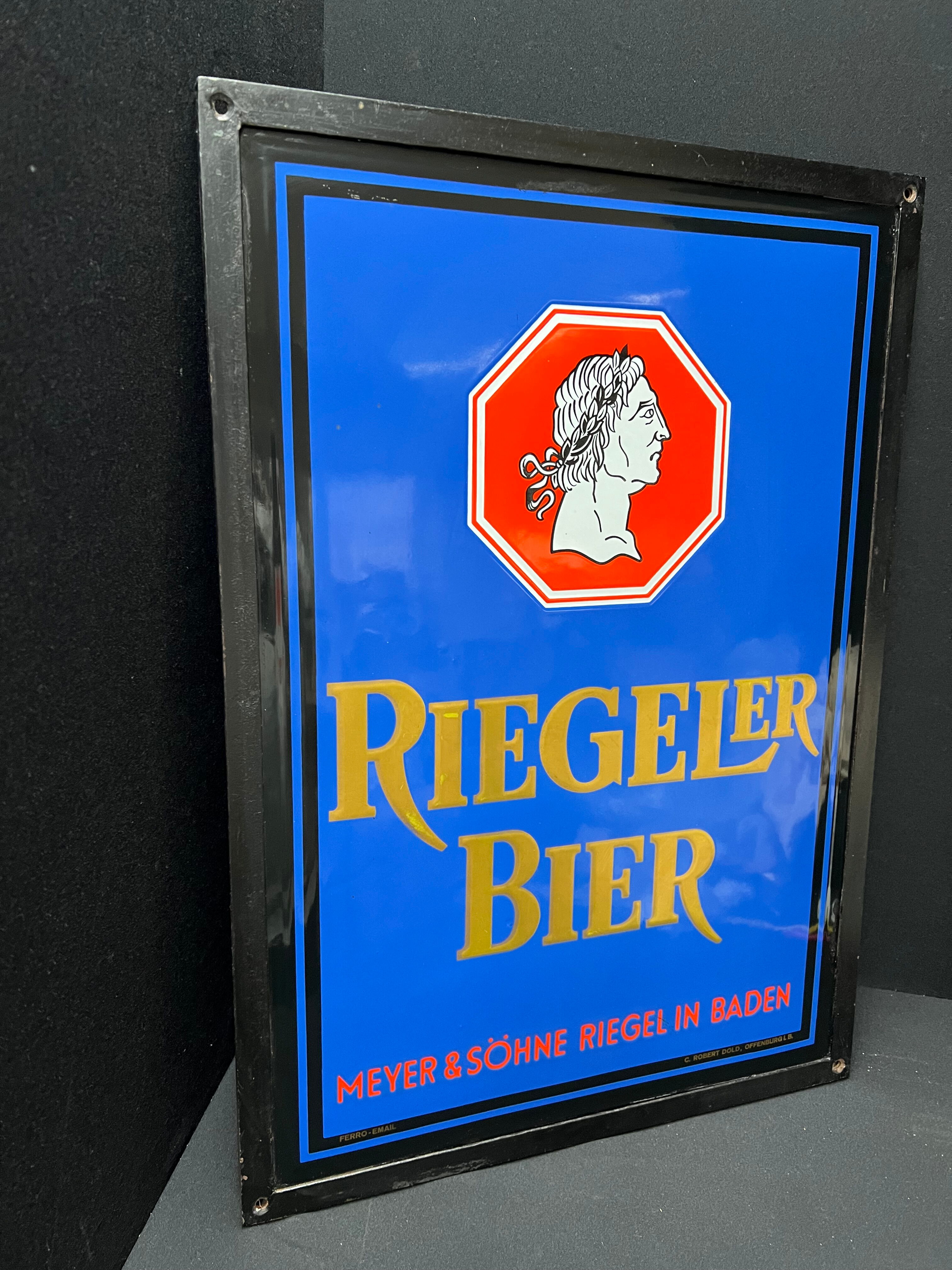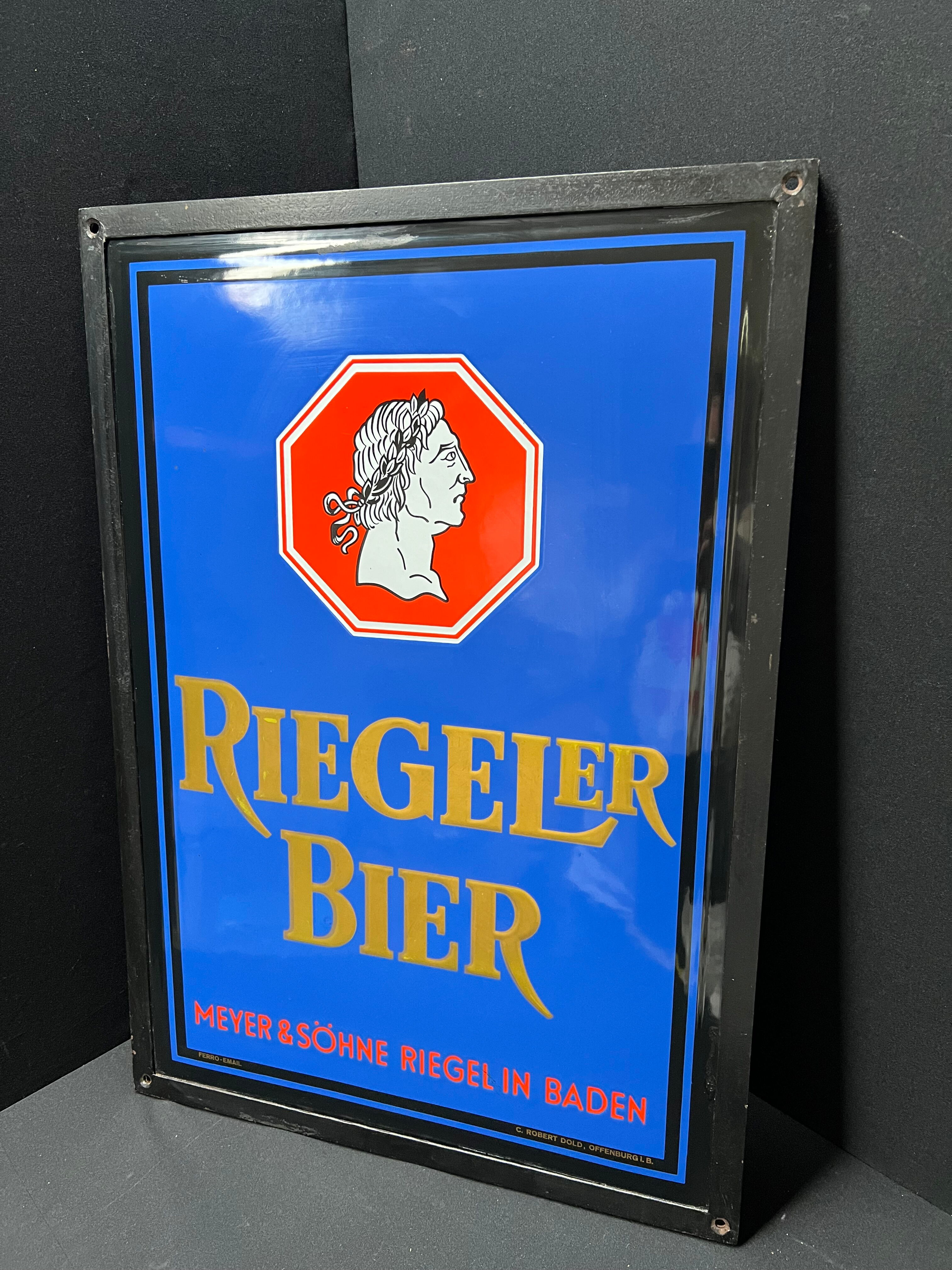 Riegeler Bier - Meyer & Söhne Riegel in Baden (Emailleschild im originalen Metallrahmen)