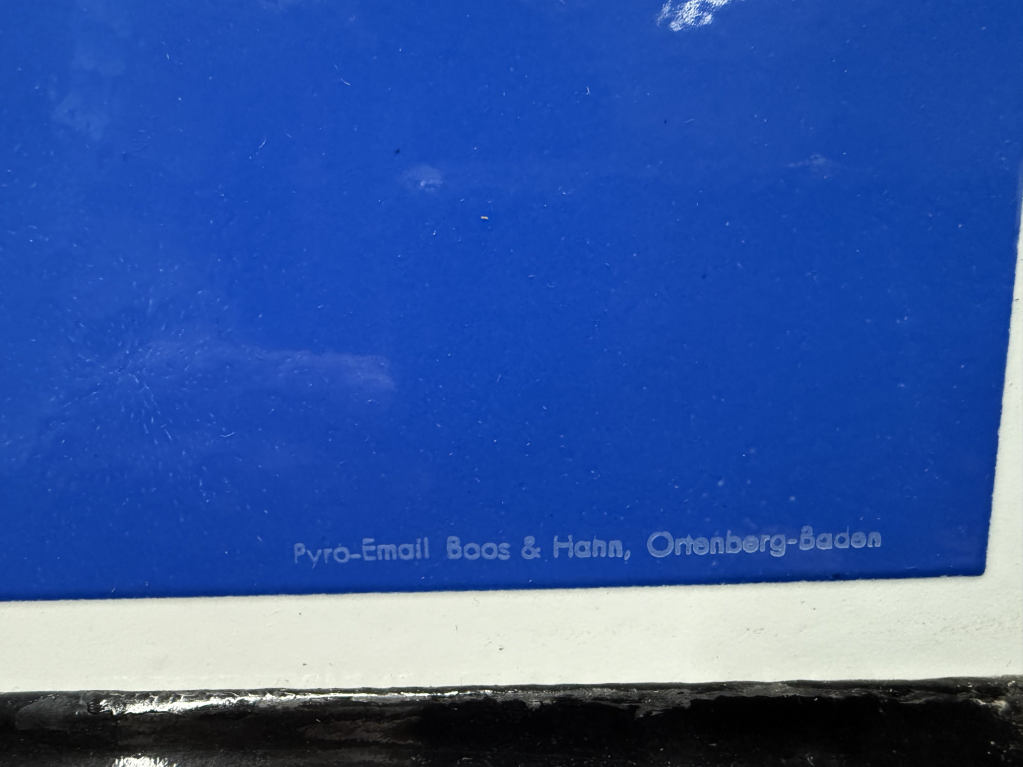 Ca. 100 x 51 cm. Rahmen innen mit den original Holzstäben. Gefertigt bei Boos & Hahn. Selten. In dieser Erhaltung sogar unikaverdächtig. Unten unleserlich signiert.