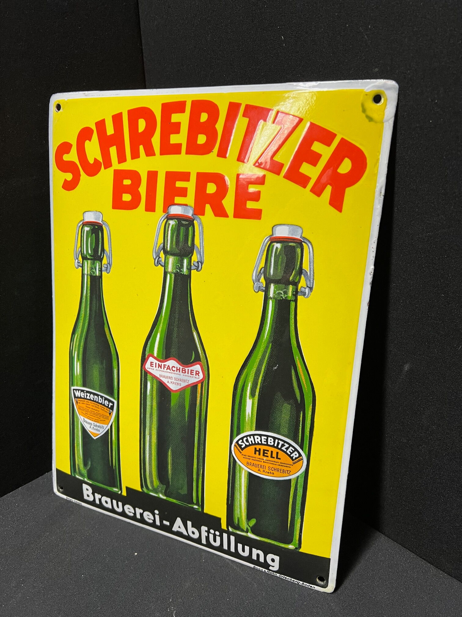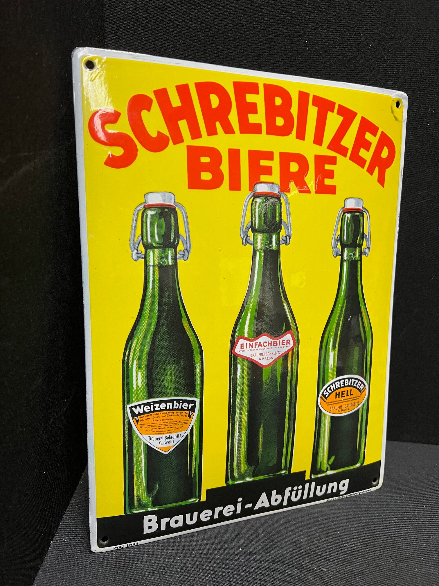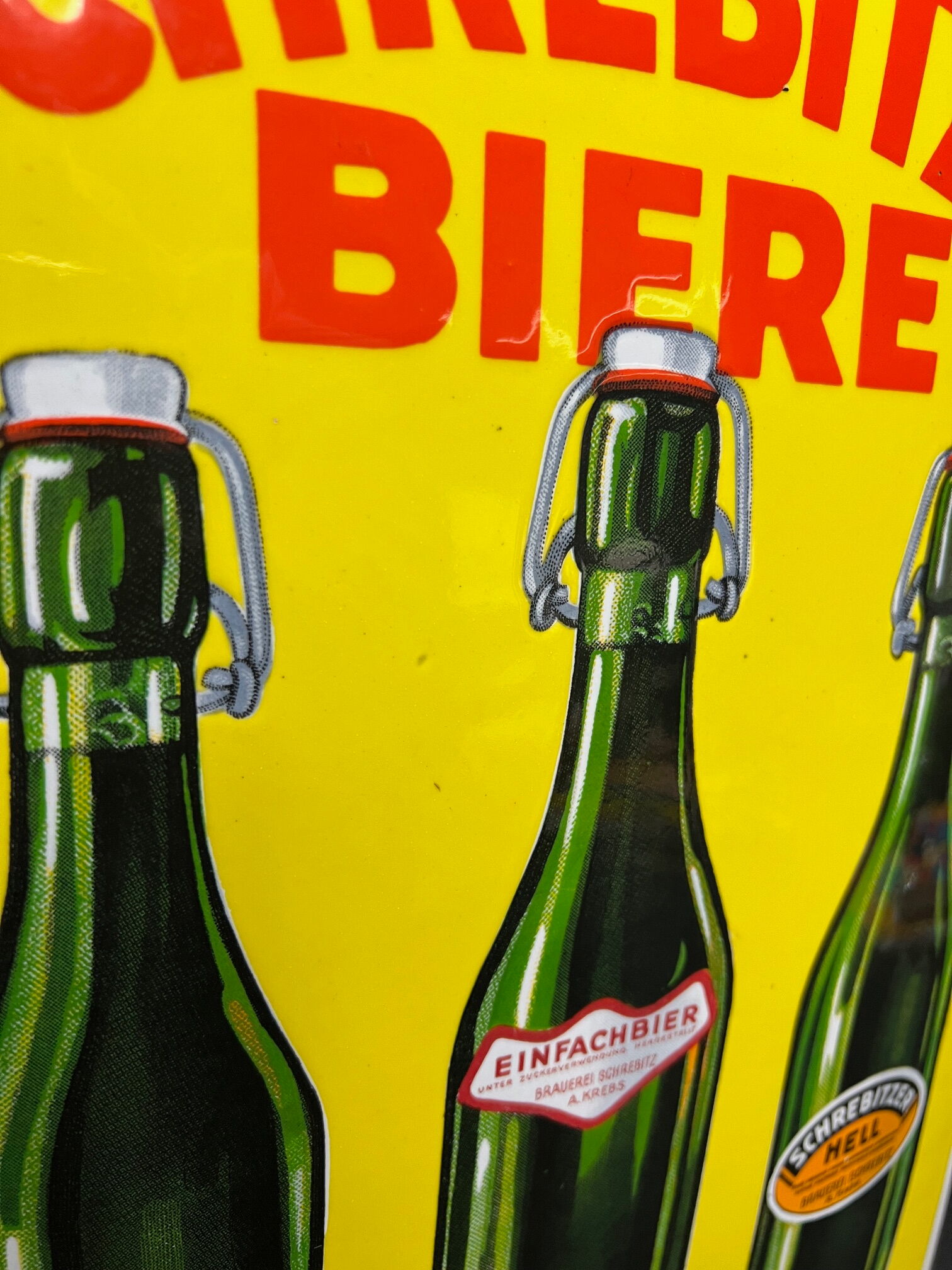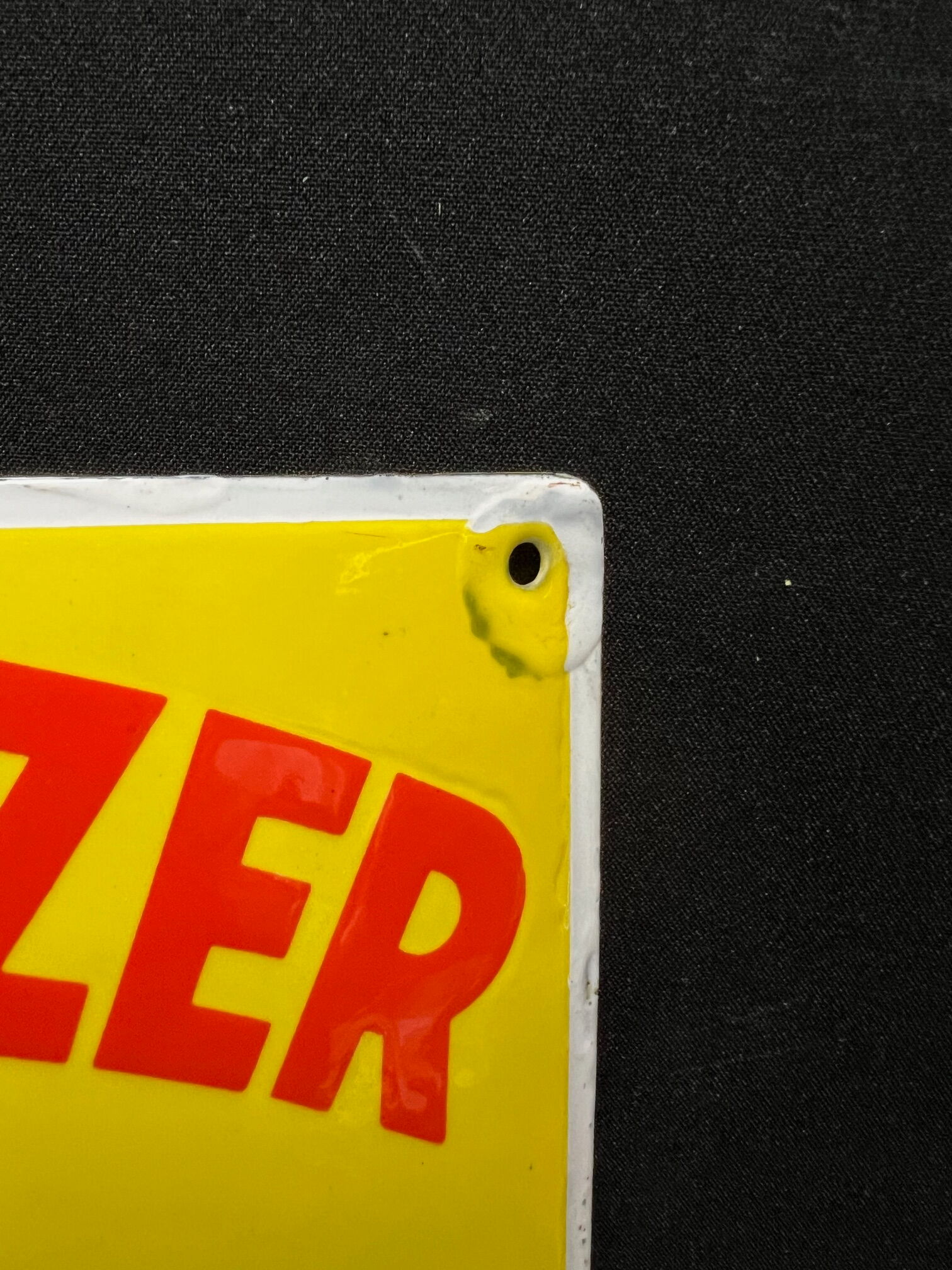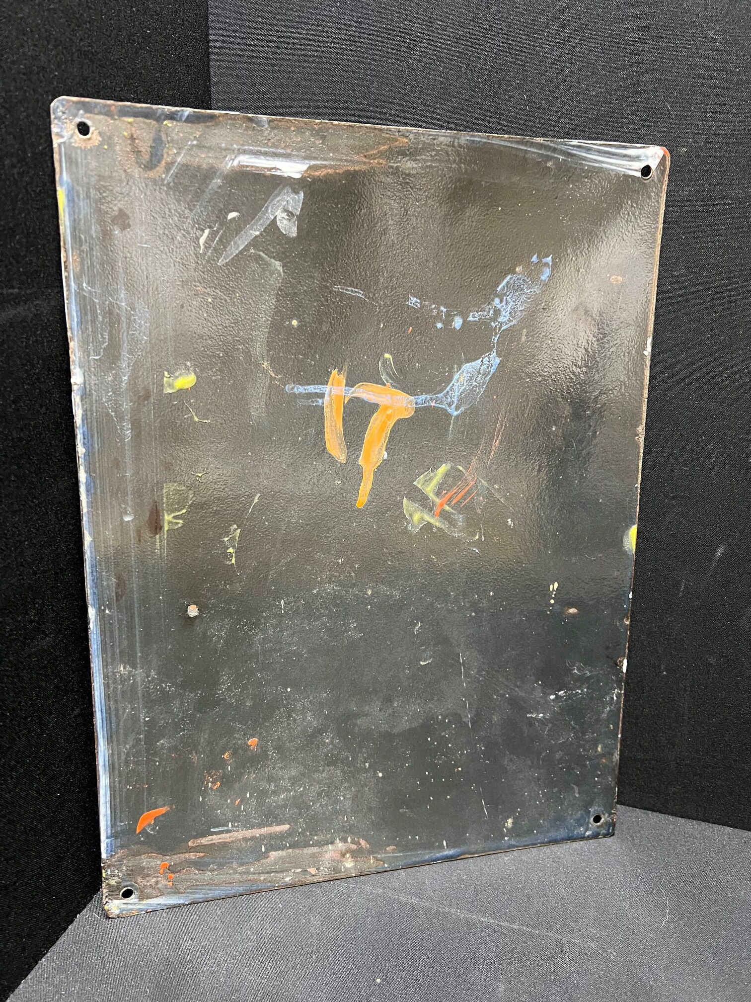 In dieser absolut prächtigen Erhaltung eine Rarität, die ihres Gleichen sucht. Ca. 30 x 40 cm groß. Gewölbt. Pyro-Email. Gefertigt bei Boos & Hahn in Ortenberg-Baden. Schabloniert und lithographiert. Lediglich ein Emaillierfehler am oberen rechten Schraubloch, ansonsten eher Zustand 0.