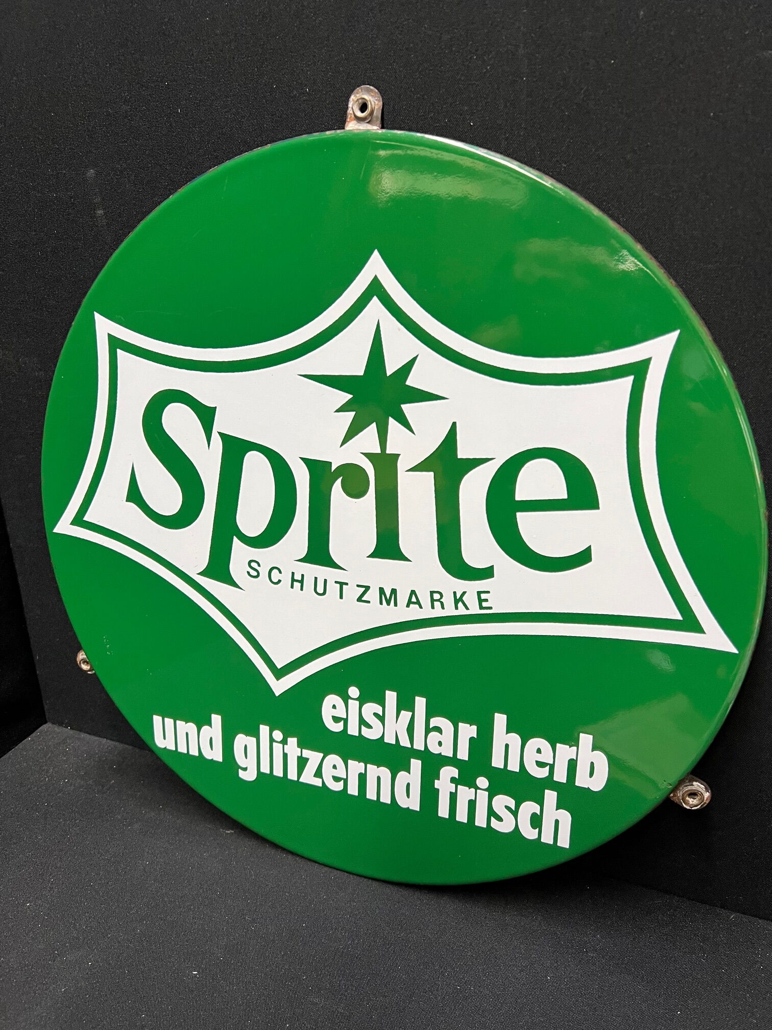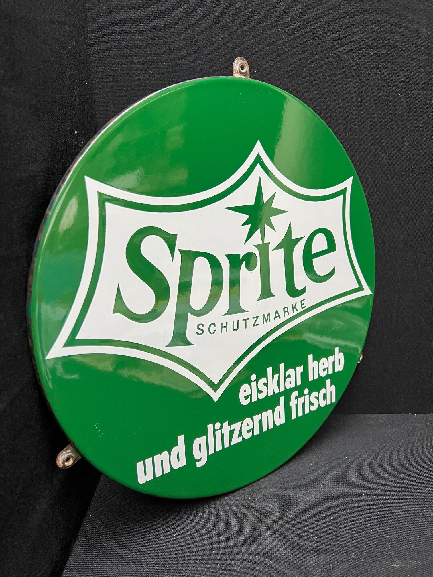 Sprite - Eiskalt herb und glitzernd frisch (Rundes Emailleschild aus dem Jahr 1968)
