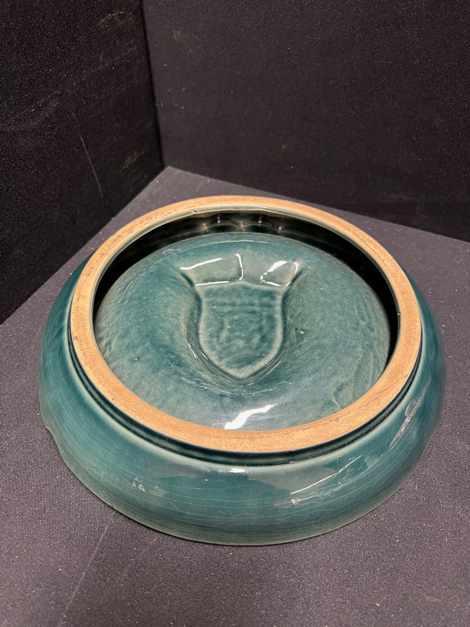 An zwei Stellen leicht bestoßen (siehe Foto) sonst sehr schön im Zustand. Ca. 26 cm im Durchmesser.