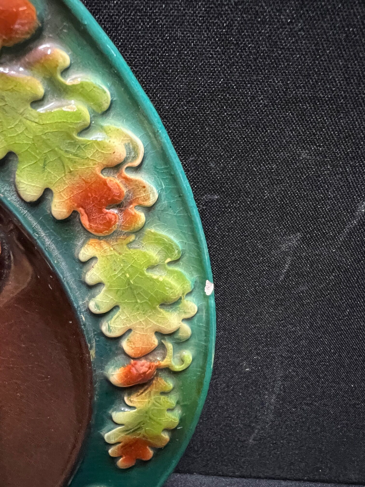 Mittlerweile selten geworden. In unbeschädigten Zustand in einem anderen Angebot hier im Shop für 145,— Euro. Hier mit dem winzigen Chip rechts nochmal drastisch reduziert. Farblich etwas getupft mit dunkelgrün und man sieht die winzige Stelle quasi nicht mehr.
