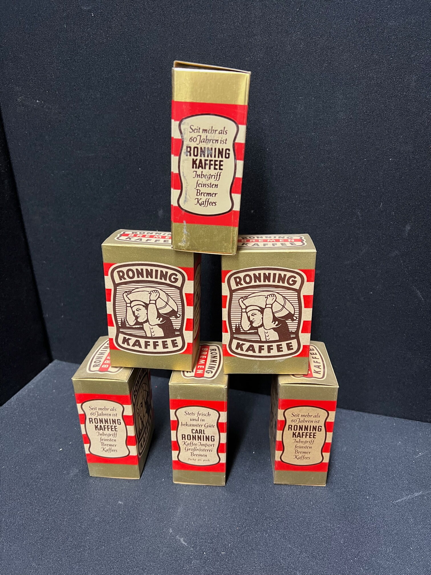 Ronning Kaffee Bremen - 6 kleine Pappverpackungen im Paket (50er Jahre)
