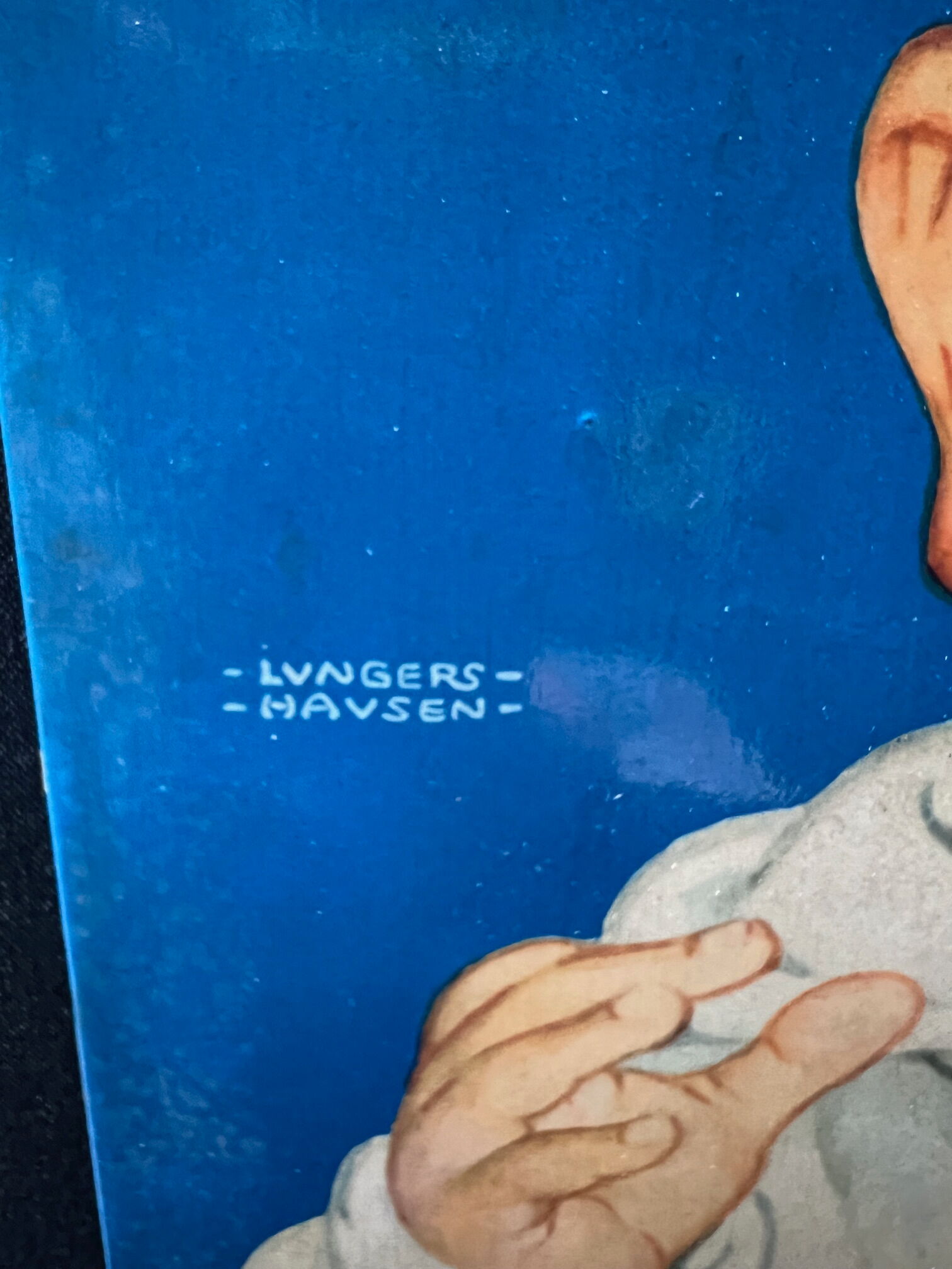 Künstlerentwurf. Signiert mit Lungers Havsen. Glänzende Oberfläche. Ecken bestoßen. Ca. 47 x 33 cm